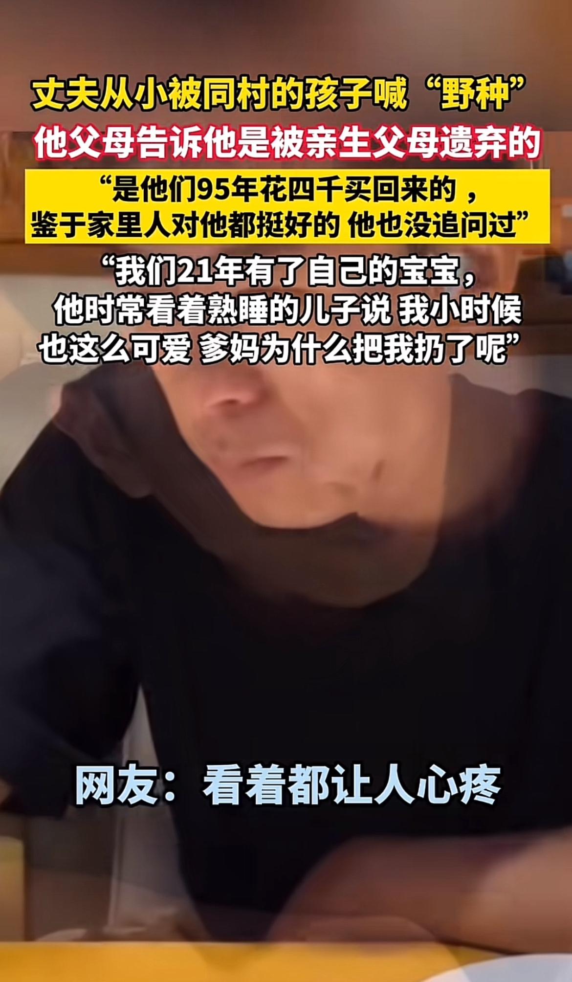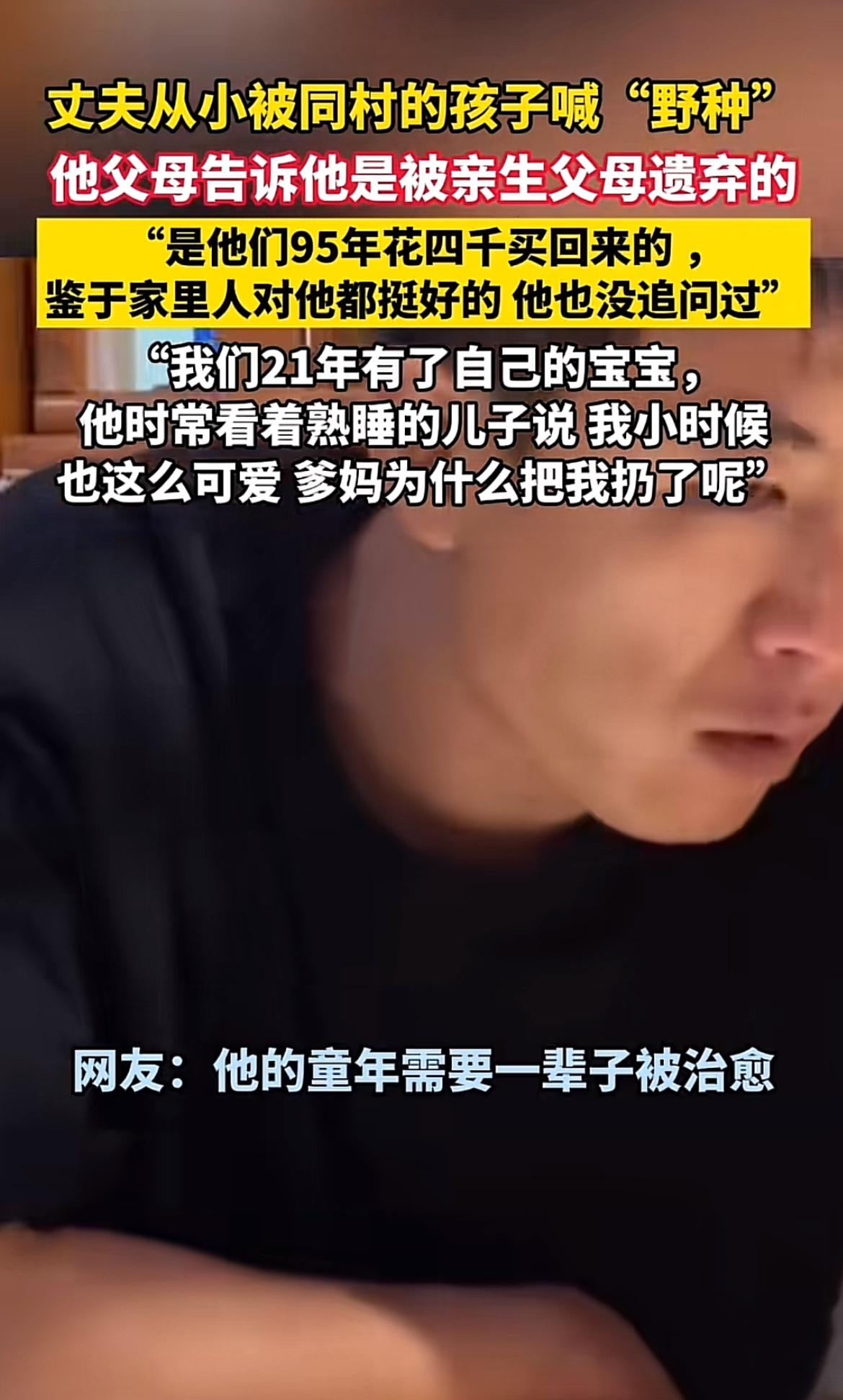 丈夫小时候的遭遇真的太让人心疼了。同村人喊他野种,那种言语上的伤害,对一个孩子来说得是多大的阴影。他的父母告诉他是被亲生父母遗弃的,那一刻小小的他该有多无助。 小时候的他,或许无数次在夜里偷偷流泪,不明白自己为何会被抛弃。那些异样的眼光和难听的话语,像一把把利刃刺痛他的心。但好在他挺过来了,现在我们组建了家庭,我会给他温暖,弥补他童年缺失的爱。希望那些童年的伤痛,能在我们的生活中慢慢被治愈。