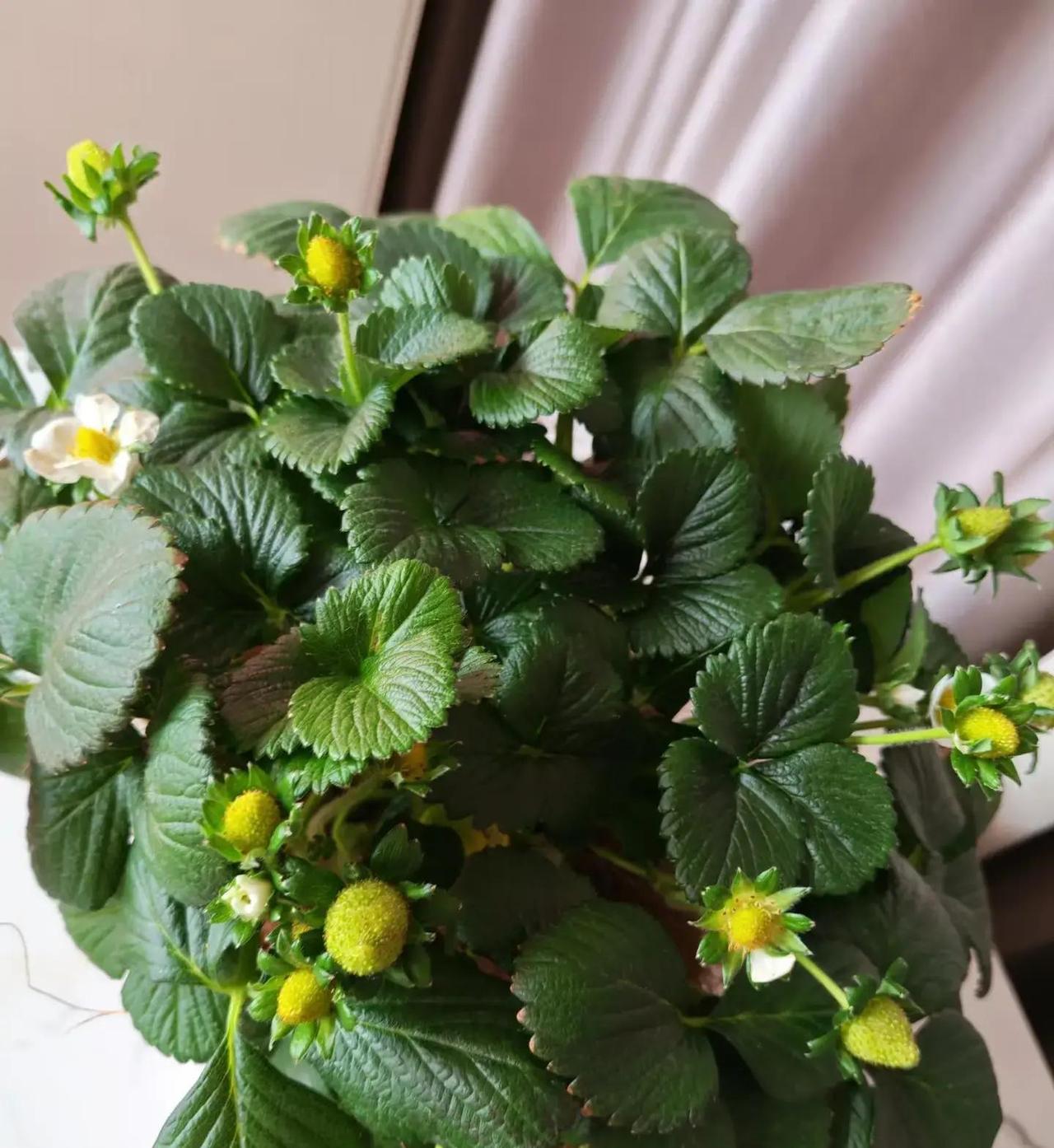 北京一位阿姨在家阳台上种的草莓突然火了,一盆居然挂了上百个果子,有的红彤彤快熟了,有的还刚开花结果,看着就让人流口水!这事儿一传开,好多人直呼羡慕,都在问怎么才能让自家草莓也这么疯长挂果。 阳台种草莓不难,关键就抓几点,就能从弱苗养到爆盆再到满果。草莓这东西营养高,每100克果肉里维生素C就有60毫克左右,吃几颗就能补一天所需,还富含膳食纤维和抗氧化物,帮着美容又助消化,难怪这么受欢迎。 先说养苗,得给足阳光,每天至少晒5小时以上,放在南阳台最好,慢慢适应强光别一下晒伤。土要松软透气,用泥炭混珍珠岩啥的,浇水见干见湿,别积水烂根。小苗弱的时候别急着施肥,等长壮点再用均衡的复合肥,薄肥勤施,促进叶子肥大根系发达。要是苗子太小就开花,得赶紧掐掉花蕾,让它先长个儿,不然容易停长,后面难爆盆。 等植株壮实爆盆了,再促花结果。用磷钾肥多点,比如磷酸二氢钾,帮着多开花。阳台封闭没虫子,得自己动手授粉,用小刷子把花粉从雄蕊刷到雌蕊上,温度15到25度最合适,果子才能长得匀称大个。结果后别停肥,有机肥水稀释浇,保持营养,果实长快味甜。畸形小果及时疏掉,集中养分给好果子。 我觉着,阳台种草莓最靠谱的就是细心管理,光水肥授粉一步不落,新手按这来,准能收获一大波甜果,吃着自家种的,安全又满足,绝对比买的香