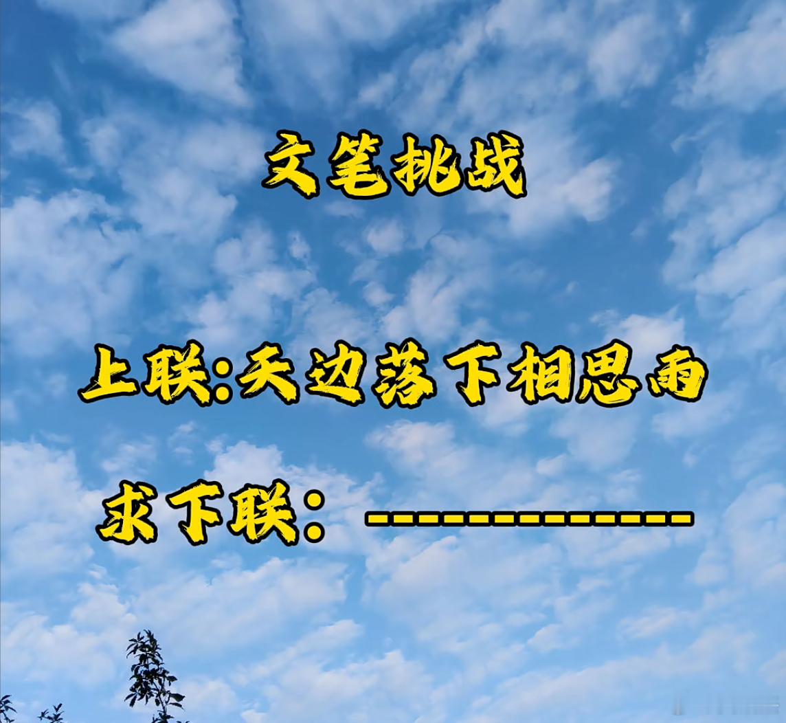 文笔挑战,求个完美下联。上联:天边落下相思雨