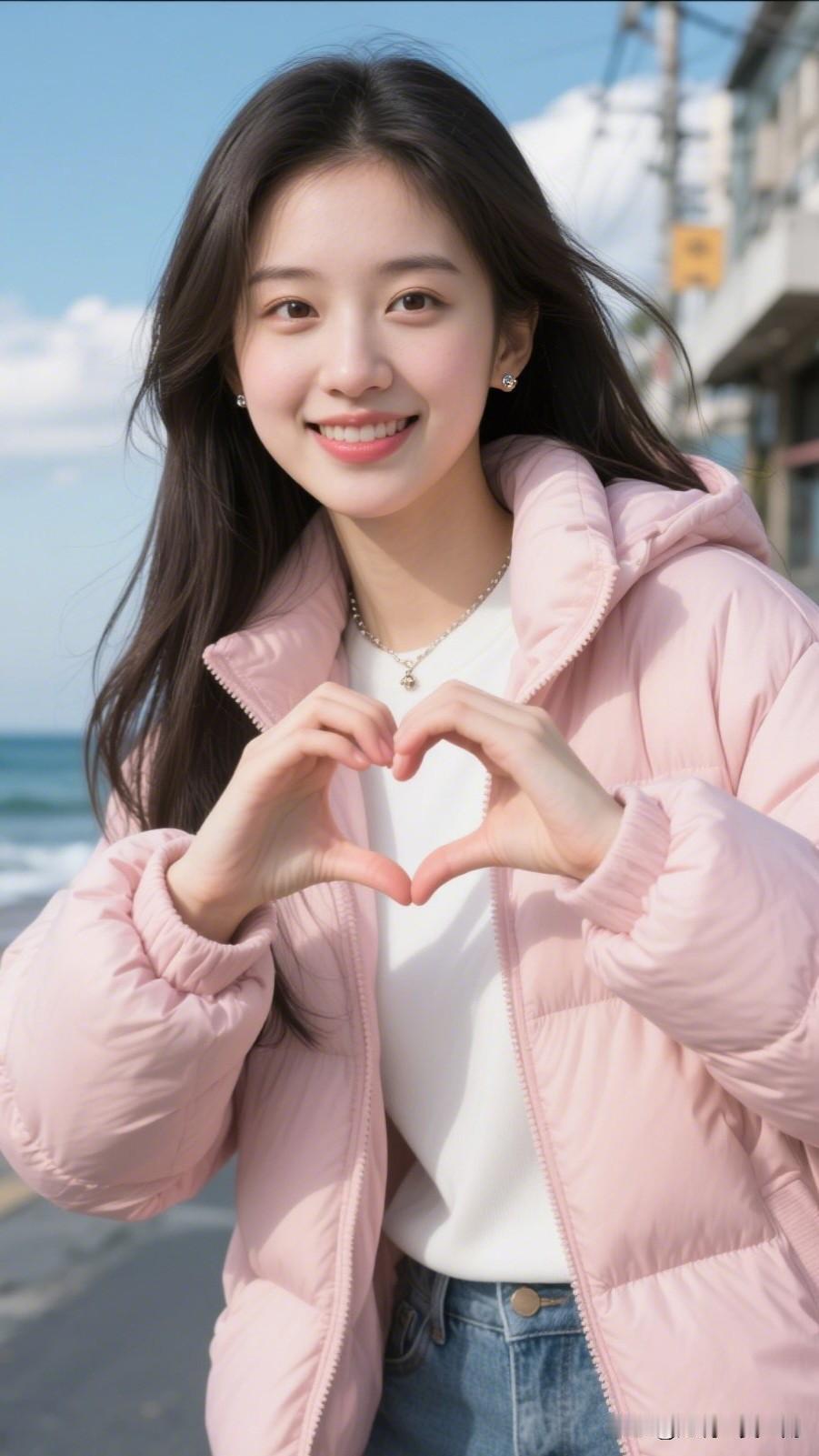粉衣少女笑,海风吹心间。随手拍生活中的美元气满满的一天,从微笑开始!😊💕