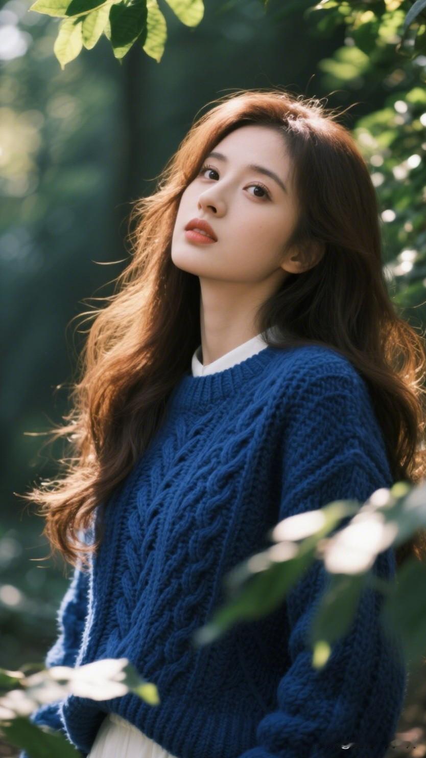 红叶满山秋,美人倚树愁。寻找镜头的美 温柔蓝调,森林中的少女,梦幻与自然的完美融合。