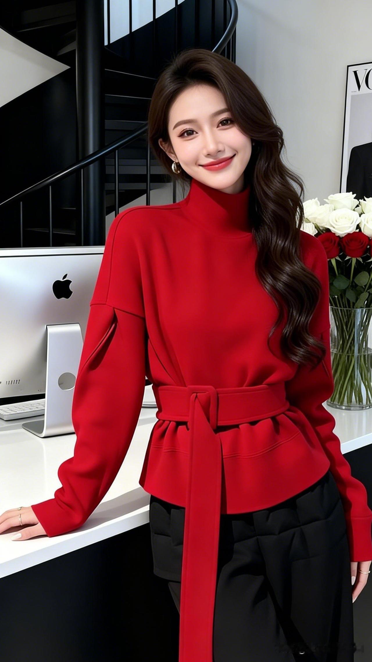 红袖添香时,笑语盈盈处。自带贵气的女生是啥样 时尚穿搭 红色高领毛衣搭配黑色百褶裙,优雅气质满分!💃🏻💃🏻