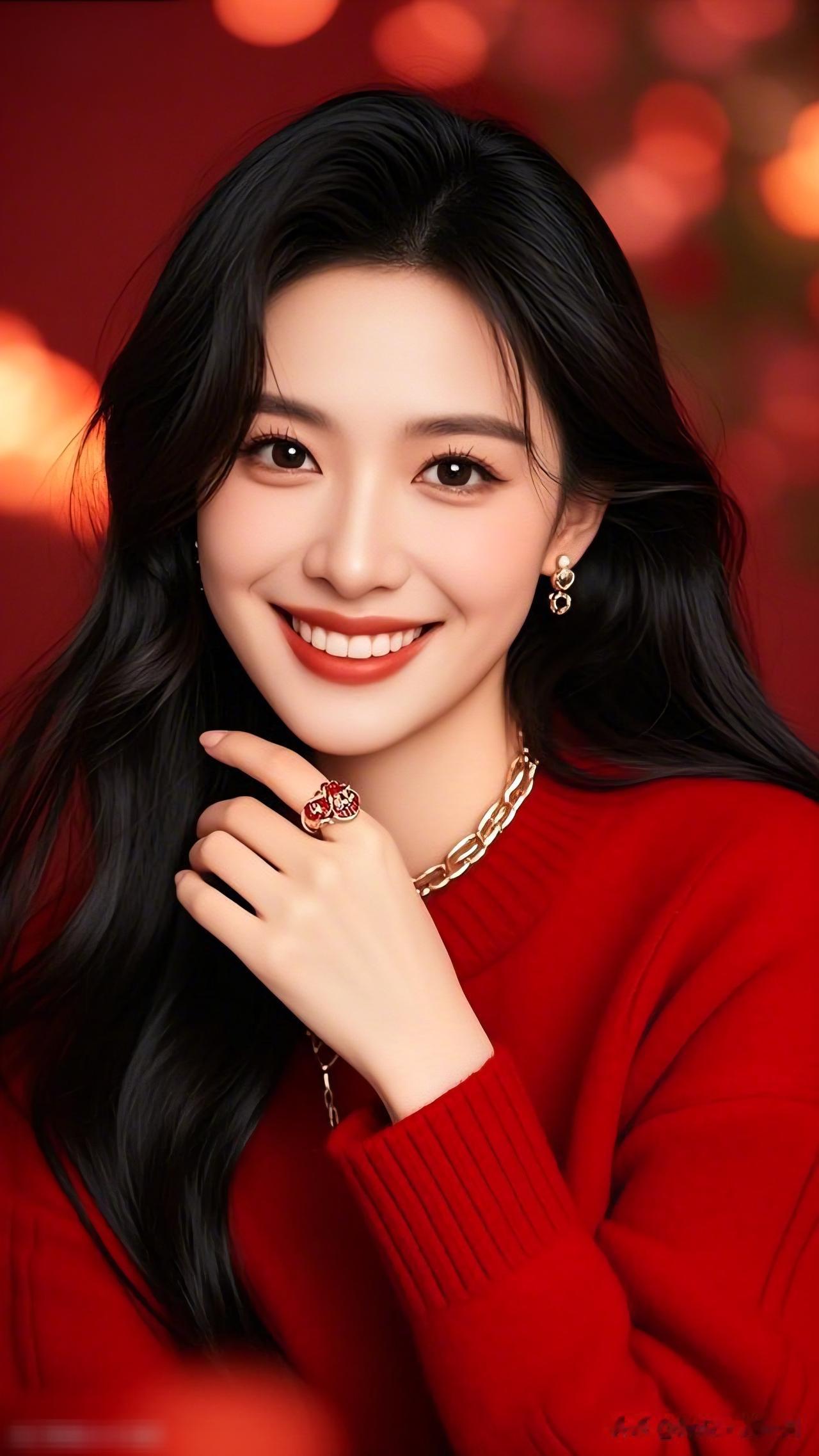 美人笑如花,金饰映芳容。美女究竟能有多美 甜美笑容,红衣少女,闪耀耳环,时尚穿搭