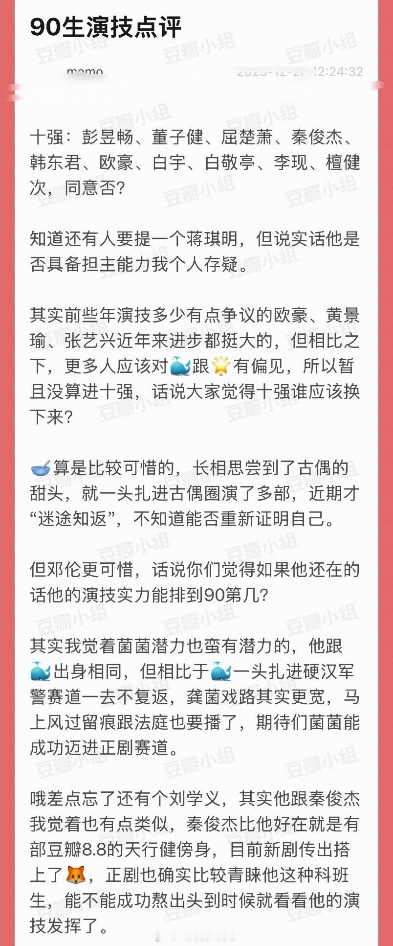 内娱90生演技点评🈶,大家感觉客观吗不?
