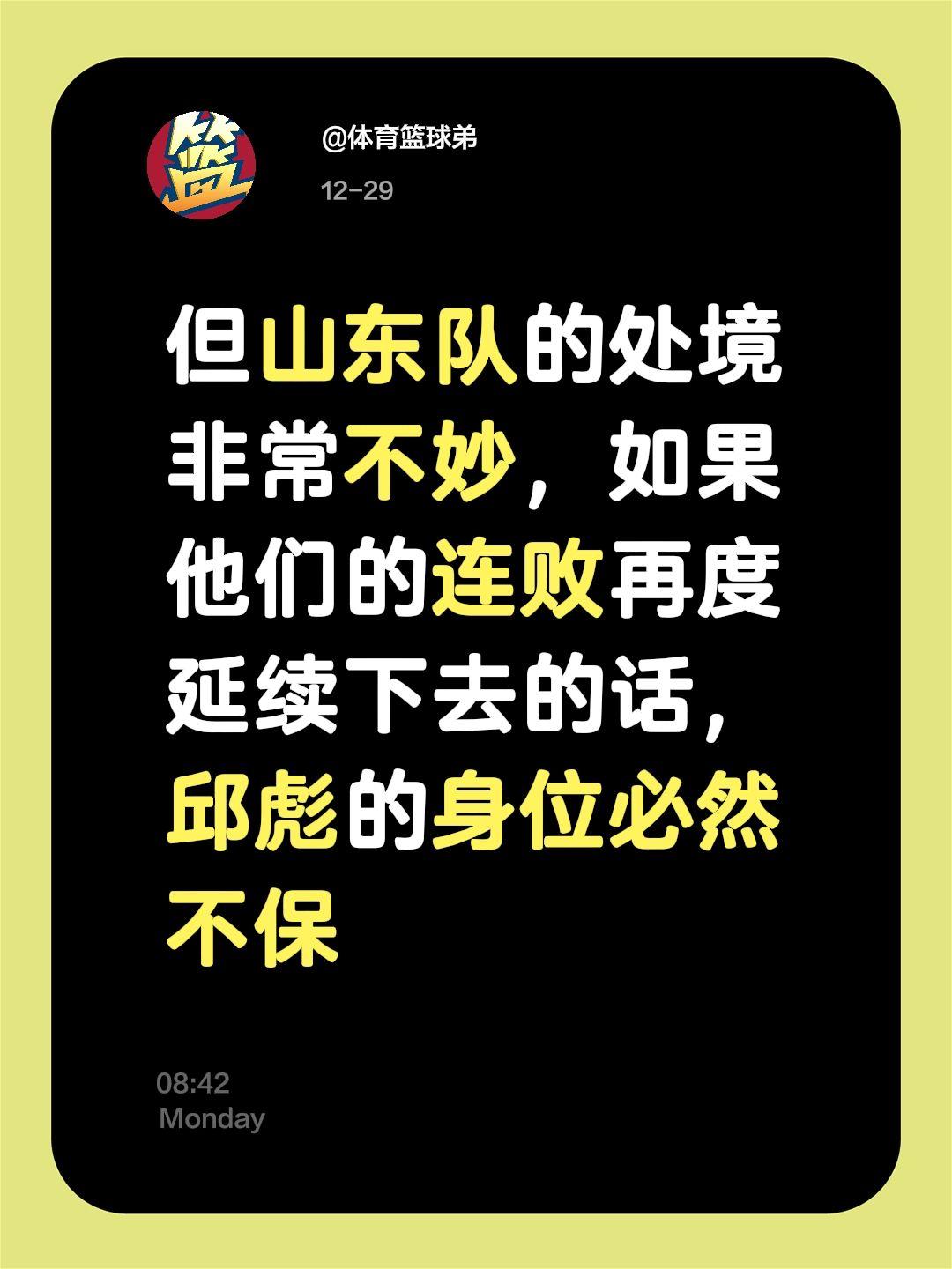 但山东队的处境非常不妙,如果他们的连败再度延续下去的话,邱彪的身位必然不保