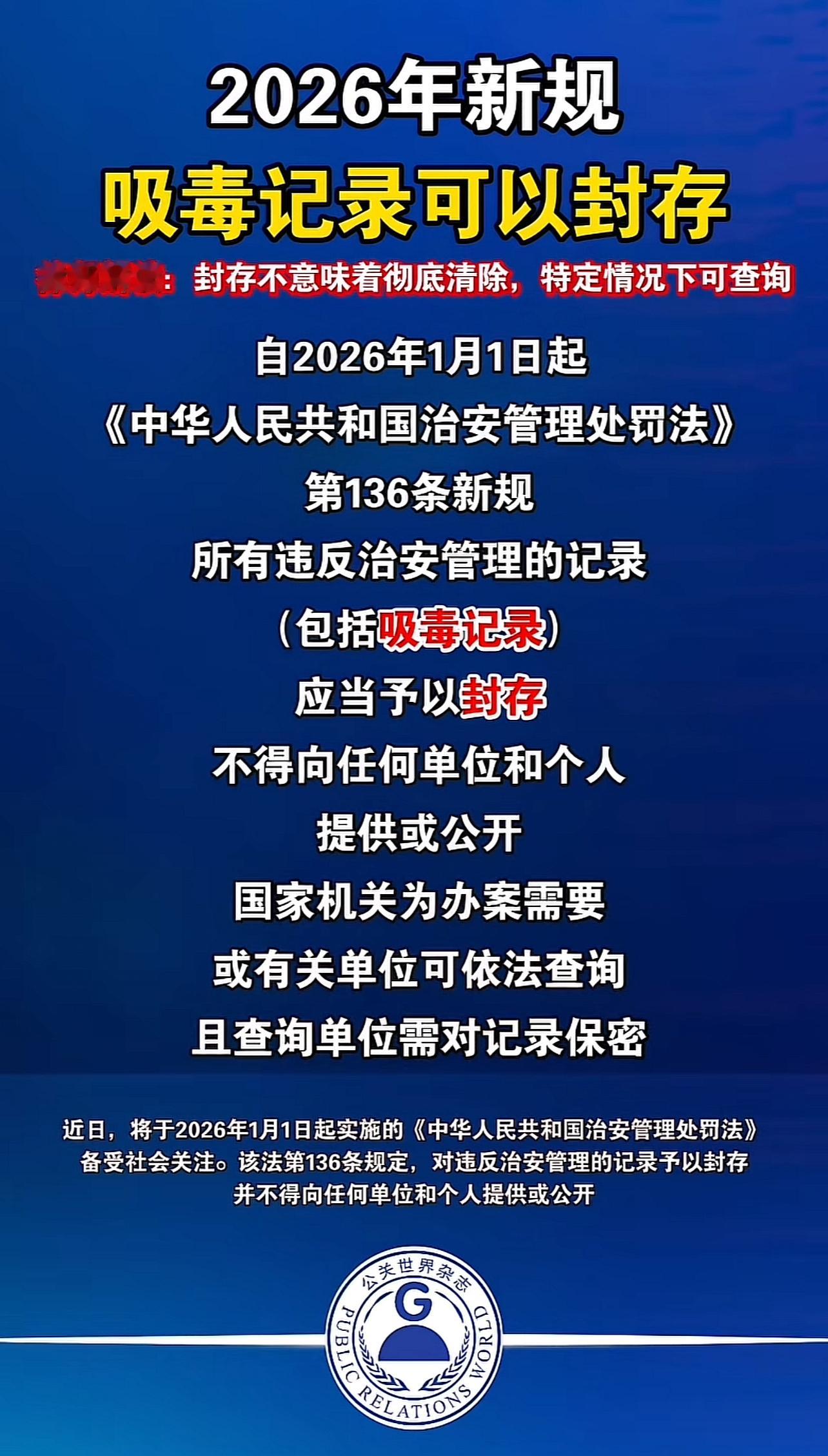明天开始,吸毒记录等违反治安管理法行为封存制度正式实施