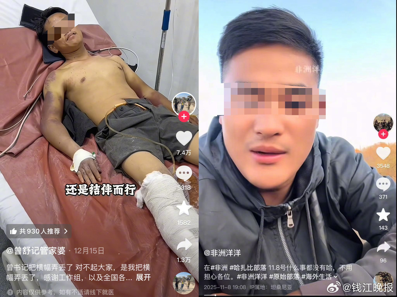 #被非洲洋洋绑架受害者亲述被困6天#【“非洲洋洋”涉嫌在坦桑尼亚绑架殴打同胞,受害者亲述被困的六天六夜】#华人志愿者协助警方抓捕非洲洋洋# 当地时间12月25日凌晨3时20分左右,涉嫌在非洲坦桑尼亚绑架、殴打中国同胞的自媒体博主“非洲洋洋”赵某洋,由当地警方在华人志愿者们的协助下抓获。记者了解到,受害人名为曾凡贵(网名:“曾舒记管家婆”),是一名来自贵州的27岁自媒体创作者,拥有23.6万粉丝,与“非洲洋洋”因拍摄非洲部落视频相识。截至发稿前,记者在社交平台搜索“非洲洋洋”,该账号仍然存在,获赞277.2万,粉丝31.7万,但账号下只剩3条视频,最新一条发布于12月4日。12月30日,记者从当地华人志愿者丁先生处得知,这次抓捕行动从12月4日开始到25日结束,持续20多天,有5名警察和多名华人志愿者,辗转四五个位置,最后在坦桑尼亚阿鲁沙区的首府阿鲁沙市锁定嫌疑人行踪,华人志愿者将“非洲洋洋”从住处引诱到车上,警察随即将其控制。12月31日,坦桑尼亚华侨华人互助中心负责人韩凯告诉记者,目前,受害人已经在国内和坦桑尼亚均有报警。该中心已将受害人口述的经历形成文字材料,并向当地驻华使馆汇报。记者联系中国驻坦桑尼亚大使馆核实,工作人员表示,确实有这起案件发生,目前一直在协助推进案件,更多关于案件本身的信息还不方便透露更多。今年7月,曾凡贵去坦桑尼亚与“非洲洋洋”有过一面之缘。10月,曾凡贵再次去了非洲,前往埃塞俄比亚,“非洲洋洋”从坦桑尼亚去往埃塞俄比亚找他,并邀请他一同前往坦桑尼亚拍部落视频。二人从坦桑尼亚的达累斯萨拉姆启程,向偏远的哈扎比部落出发。起初一切看似正常。然而,凌晨4点,当车辆驶入杳无人烟的地带时,曾凡贵受到了突然袭击。“当时,我在副驾驶上迷迷糊糊地睡着了,突然感觉脸上一阵冰凉,他对着我喷防狼喷雾,我看不见,还以为他是跟我开玩笑,结果下一秒,他就用棍棒袭击我的头部。紧接着,他打开车门把我暴打一顿,把我腿给打断,又用电棍电,最后把我塞在后备箱。”曾凡贵回忆。曾凡贵说,“非洲洋洋”抢夺了他的手机转走两万块钱,还去搞贷款,但只贷款成功一千元。“他说,但凡我有个十万八万,他马上就把我销户了,因为我没有多少钱,他就折磨我,让我从国内搞钱。”“当时,腿部的骨头已经明显地翘起来,再不看医生估计就废了。”后来,曾凡贵想了办法,“让我从国内搞钱也可以,但你必须把我的腿治好。”曾凡贵觉得,只要被带出去,就有办法逃跑,只要到了医院,就可以报警了。“非洲洋洋”同意了他的提议,逼曾凡贵写下谅解书,录谅解视频,之后就把他带了出来。不过,“非洲洋洋”并没有真正带他去医院。“我的心里乱成一团,后来遇到了交警查车,我就趁机拉住交警的衣服,跳下了车,结果他又把我抱上了车。”曾贵凡说,围观的人骑着摩托车追了上来。“我开始抢夺他的方向盘,他没有办法,把我推下了车,自己开着车跑了。”被困六天六夜后,曾凡贵脱困了。对于,曾凡贵所述经历,11月29日“非洲洋洋”曾在社交平台发文否认,“我承认我打了他,这是我冲动,我错了。但对于我绑架他,甚至让他从国内骗人过来这绝对是无中生有,说我把他的手脚捆起,仍在后备箱里,也是没有发生的,宾馆视频可以拍到。”此外,“非洲洋洋”还在文中讲到,两人发生互殴,双方都有不同程度的受伤,“一路走来,我们花费都是双方AA制,但我的花费远比他多,因为租车费曾凡贵一直不愿意给,我们发生了口角导致两人互殴。后来我气不过,花费150元找路过的黑人又把他打了一顿,没想到下手太重,把他的腿打断后我很害怕也不敢声张……”12月4日,“非洲洋洋”账号的最新视频,显示为这六天来,他抱着曾凡贵上下车及入住旅店的监控视频。(潮新闻 记者 贾晓雯)