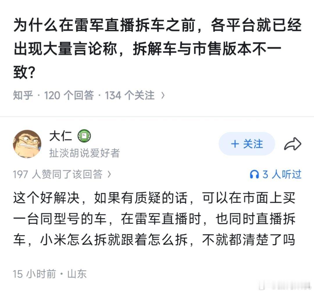 质疑雷军拆的是小米yu7特供版?那你们也买一台拆不就完事了么