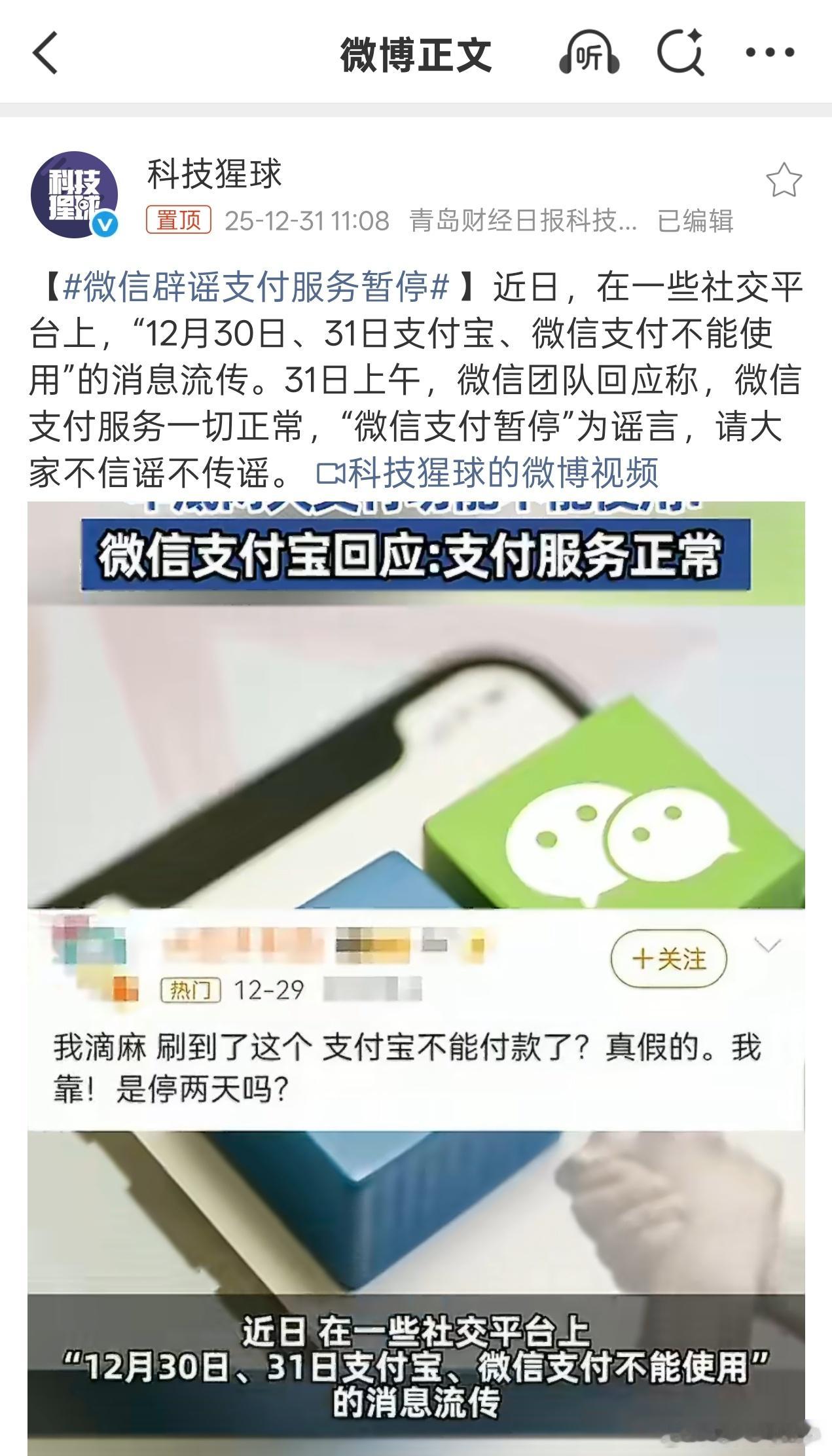 微信辟谣支付服务暂停 不是,这个谣言也太离谱了,真的有人相信吗?