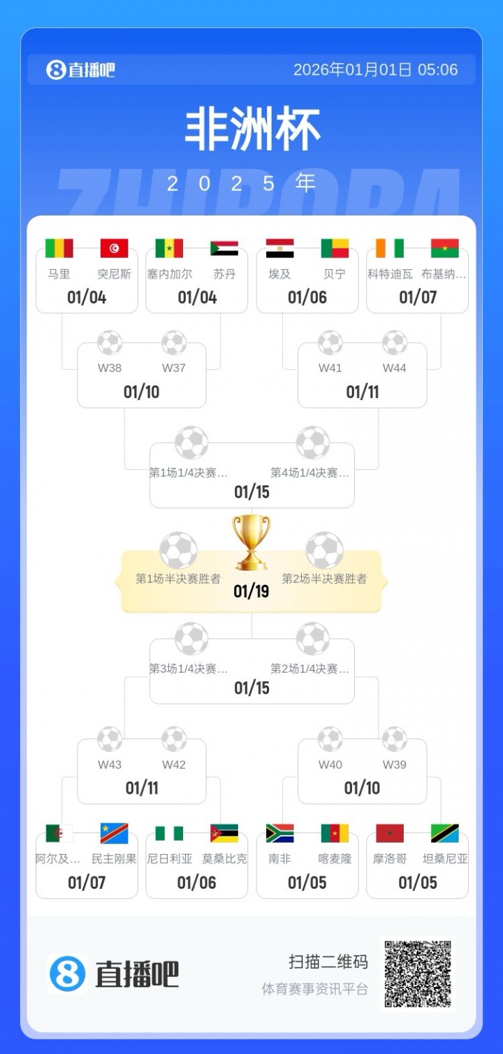 直播吧01月01日讯非洲杯小组赛阶段所有比赛结束,16强完整对阵出炉。