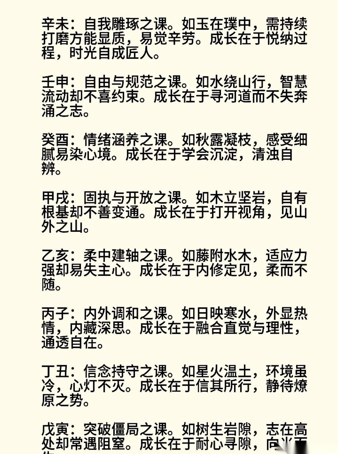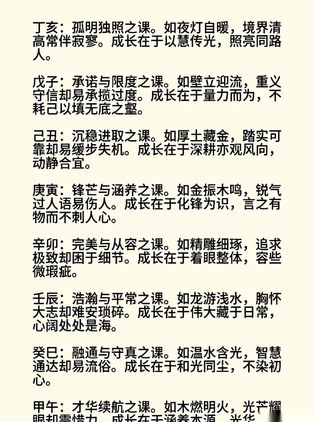 最近老刷到什么“日柱”,一堆人拿着自己的生日去对那个表。 好像拿到了一份绝密的出厂设置报告。 瞬间就懂了自己为啥这么轴,为啥老在感情里摔同样的跟头。 我一开始也觉得,这都什么年代了。 但后来琢磨了一下,突然就明白了。 这哪儿是迷信啊。 说白了,就是日子过得有点迷茫,想给自己找本说明书看看。 工作累死累活,好像总也够不着想要的。 感情掏心掏肺,最后人家当你是个过客。 夜深人静的时候谁没问过自己: 我到底是块什么料?我这辈子到底图个啥?凭什么啊? 那张纸,那个盘,它不是答案。 它是个镜子。 是个让你有机会停下来,跟自己说几句掏心窝子话的由头。 它告诉你,你天生脾气可能有点急,那你是不是可以在发火前,先默数三个数? 它说你可能骨子里带点孤独,那是不是提醒你,别老自己扛着,偶尔也跟朋友吐吐槽? 所谓的人生必修课,哪有那么玄乎。 唯一的功课,就是认识你自己,然后接纳你自己,最后,想办法活成你最舒服的样子。 那份“说明书”只是个起点。 怎么开好你这辆独一无二的车,方向盘,还在你自己手里。