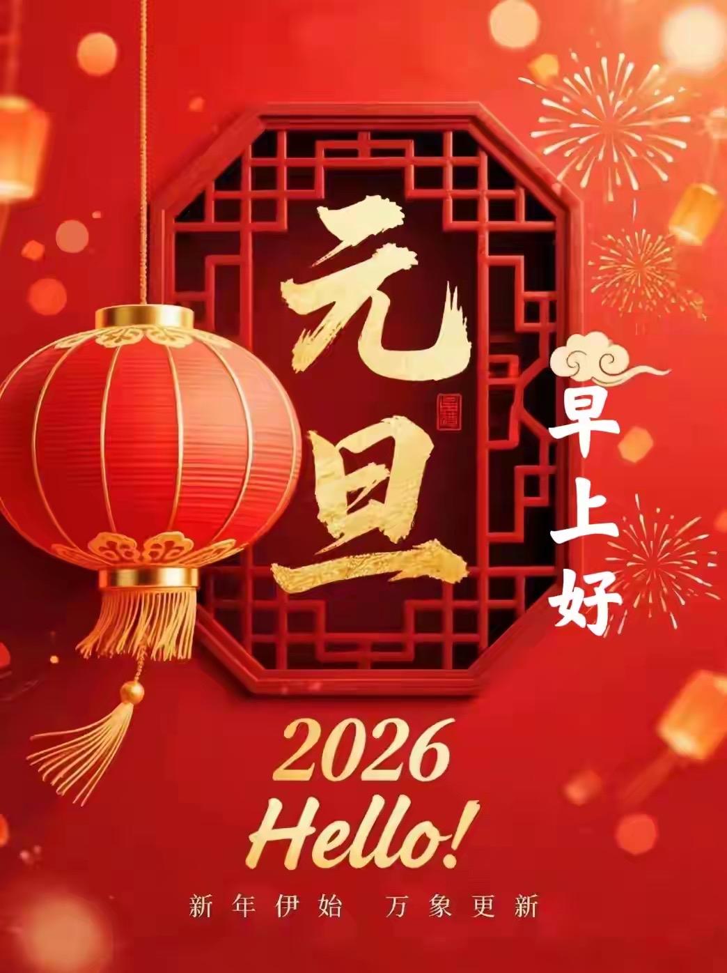 元旦·晨语 晨光轻拂窗台, 新的一年正带着清浅的暖意, 悄然抵达。 昨夜的烟火余温未散, 今晨的风里已裹着崭新的期待。 不必追念昨日的遗憾, 也无需纠结明日的未知, 此刻,阳光落在肩头, 日子鲜活明亮。 把过往的悲欢轻轻折叠, 揣进岁月的行囊。 新的365天, 愿你晨起有粥可温, 暮落有灯可依, 在细碎的时光里, 守得住寻常, 也盼得到远方。 新岁已至,万事皆安。 元旦快乐,新年多福!