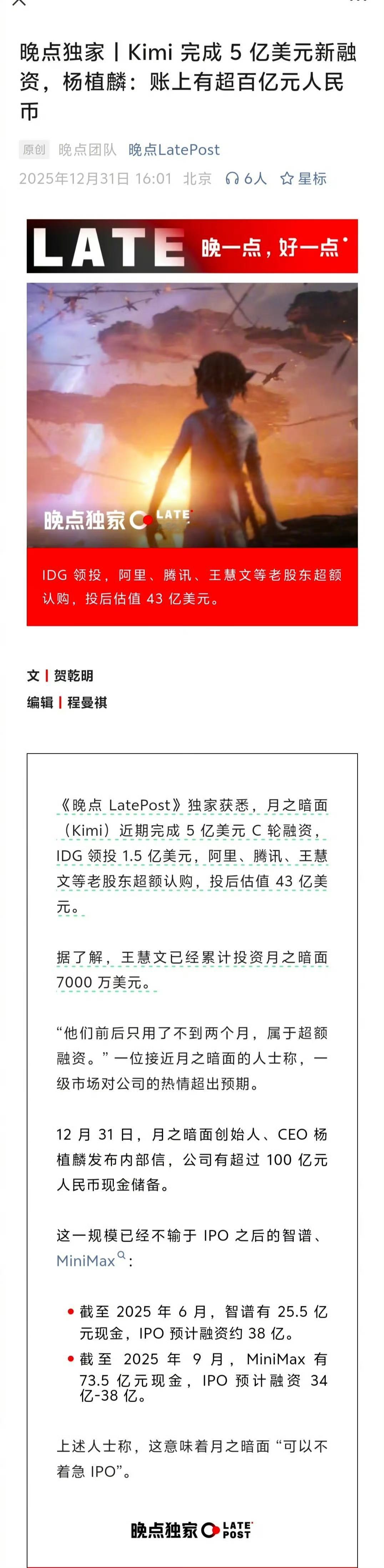 据“晚点”独家报道,Kimi完成了5亿美元新融资。AI赛道的竞争,粮草必须要足啊!