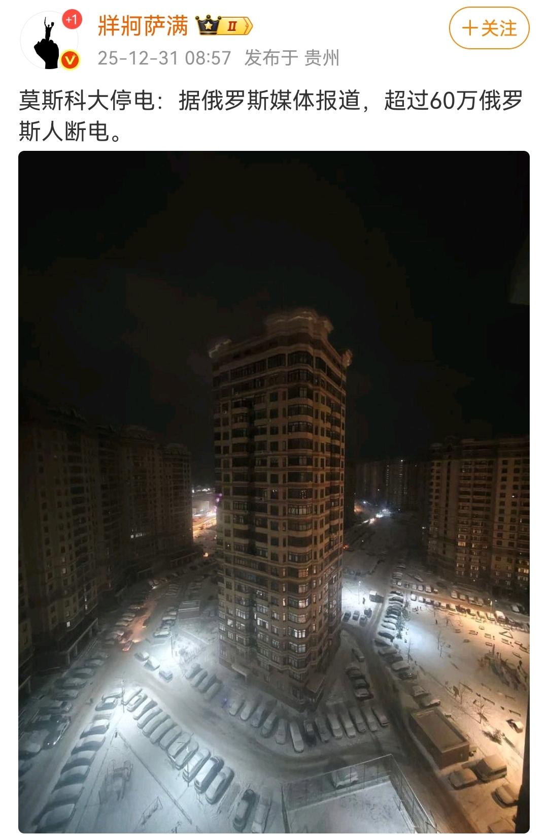 俄军是最有战斗力的军队? (图一)俄防长在2026年新年贺词中骄傲地宣称,俄军是最有战斗力的军队。 (图二)俄首都莫斯科大停电,60万莫斯科人在寒冷的冬日断电。莫斯科有大约1200多万人口,俄军至少保卫了1100多万莫斯科人用电的自由,做得很不错了。