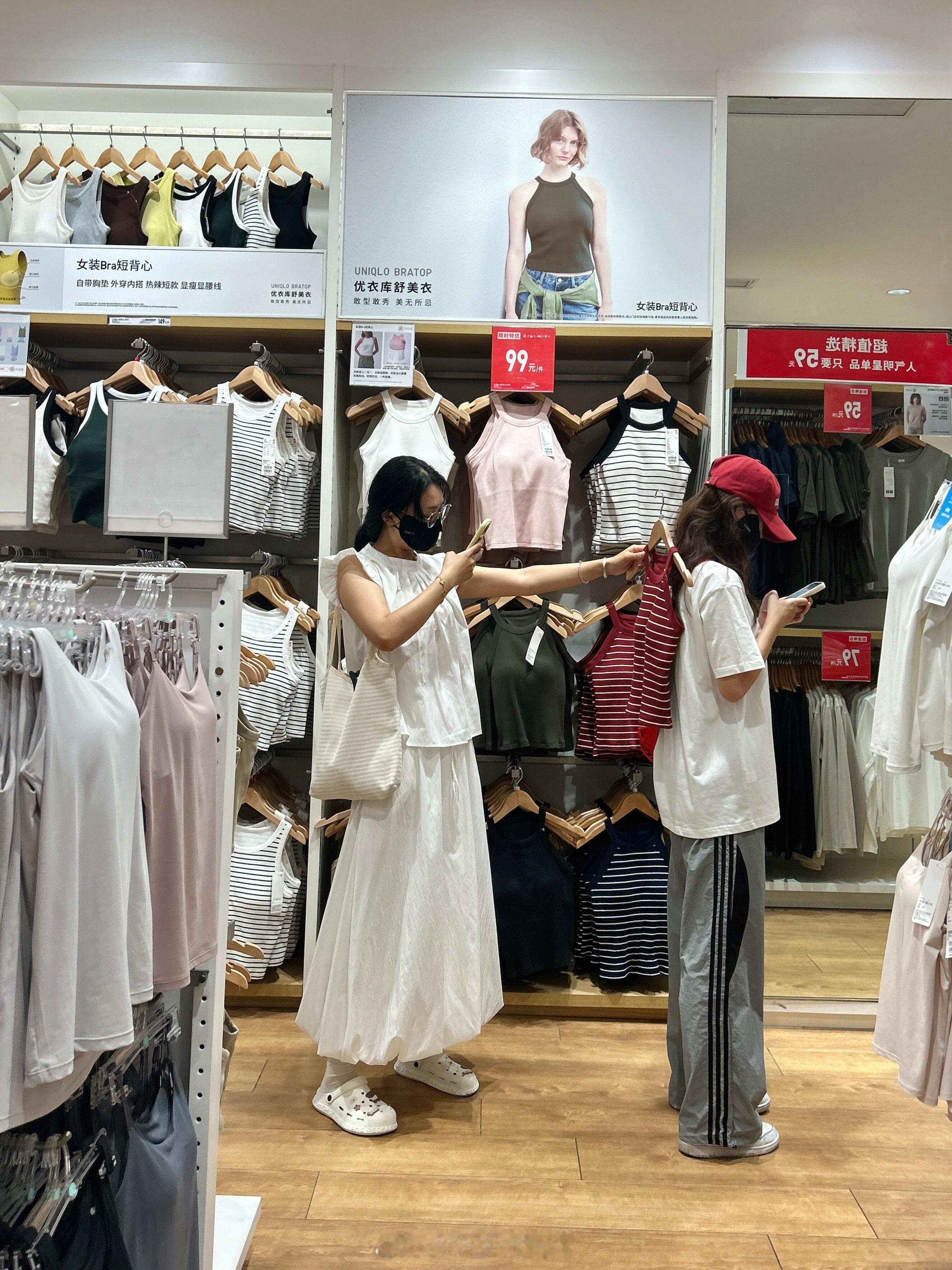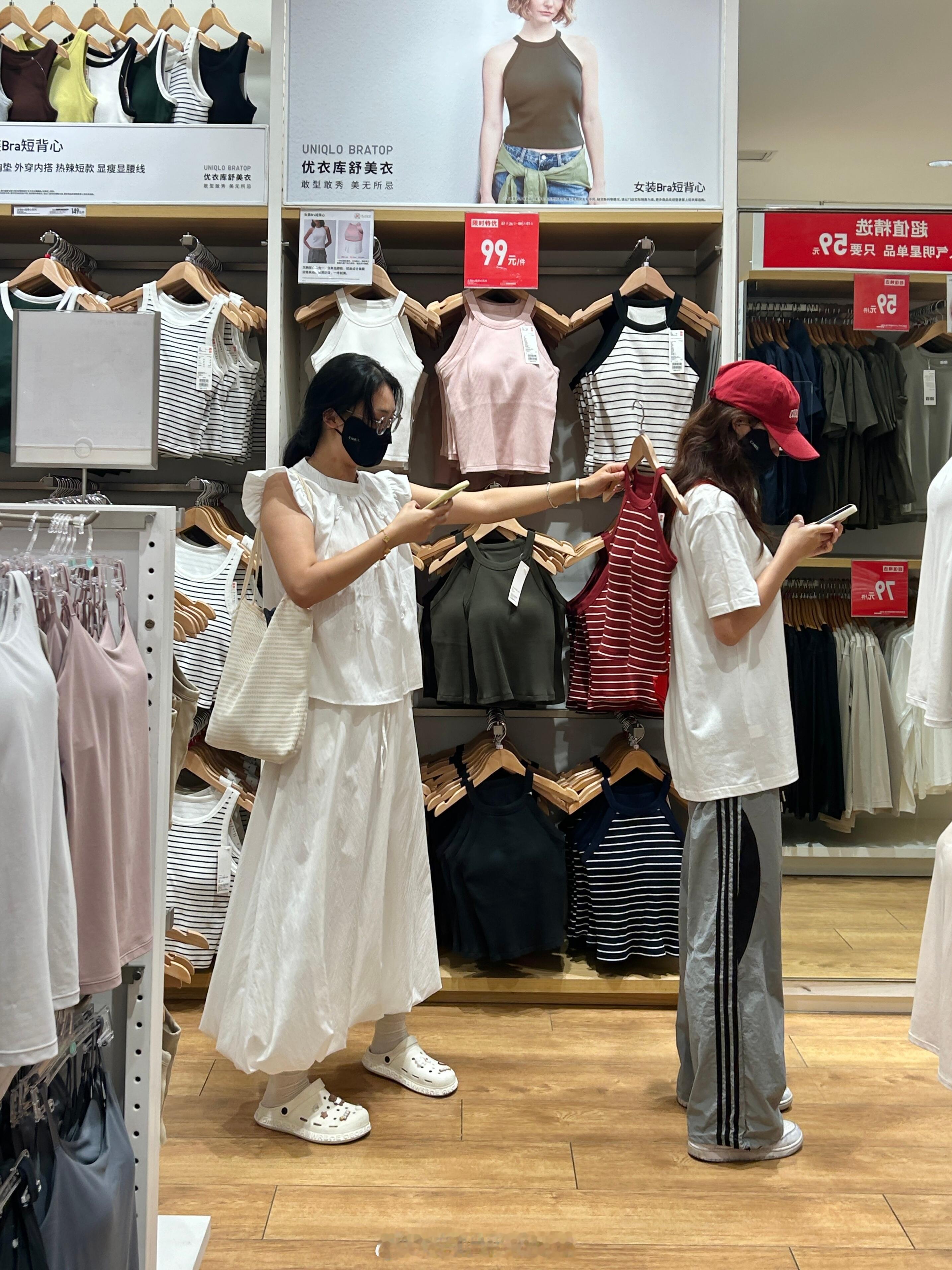 呵呵优衣库看到的。。。闺蜜为了找个上衣搭配她新买的运动裤,逛了半天也不知道选什么啊,不过她这条运动裤还挺百搭的,就是看起来很轻薄舒服的样子很适合夏天,还是速干的面料~