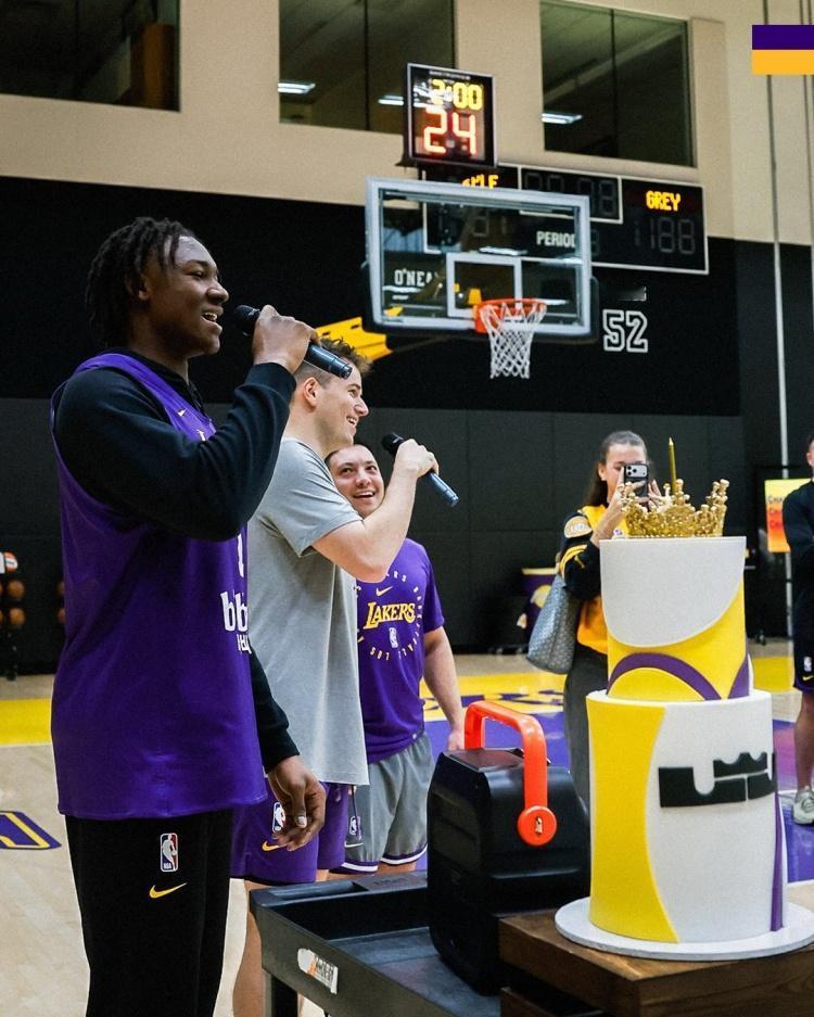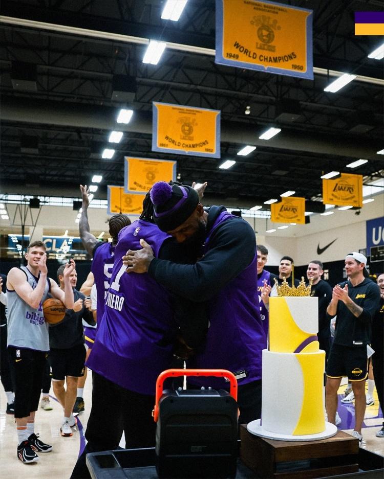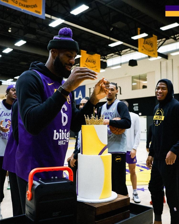 完美极致男人的成功人生典范,NBA体育界最伟大的超级巨星——41岁的詹姆斯生日快乐![蜡烛][蛋糕][蛋糕][蛋糕][兔年大吉] 湖人全队为老詹庆生。保留节目!艾顿指挥新秀为詹姆斯领唱生日歌, 皇冠蛋糕吸睛👑!湖人顶流注定吸引全世界目光。詹姆斯 勒布朗·詹姆斯 nba 詹姆斯 湖人球星詹姆斯 勒布朗詹姆斯 篮球巨星詹姆斯 硬汉詹姆斯