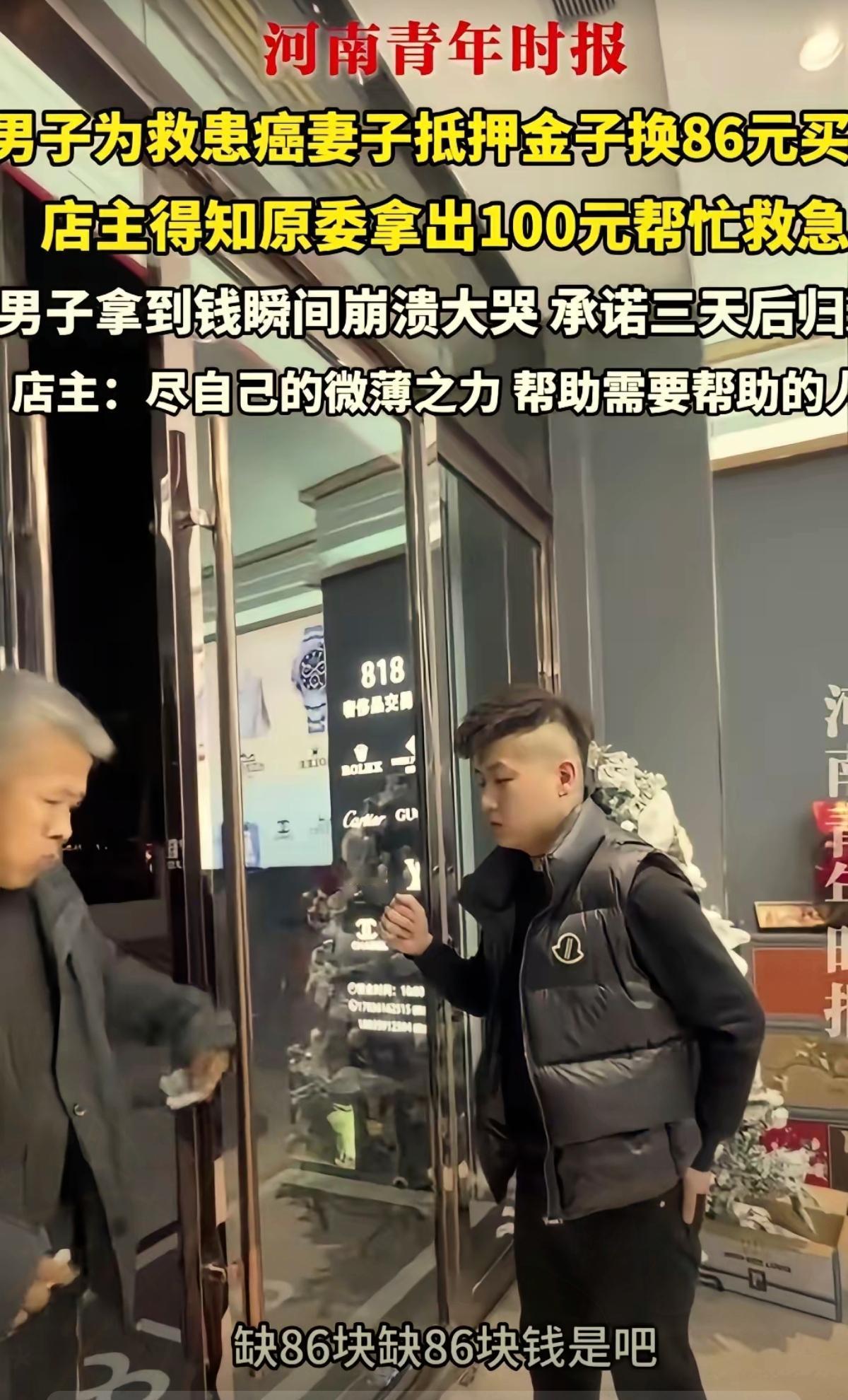 看哭了!山西这位店主的举动,才是成年人世界最珍贵的双向奔赴! 谁懂啊!大哥为给妻子买药,揣着金子在店门口徘徊半天,哽咽着说就差86块,那股无助又要强的样子,真的戳中人心。 换别人可能直接当骗子打发,可店主听着那有零有整的钱数,心一下子就软了。 不要金子不提回报,直接塞100块说“先买药,有钱再还”,这份不猜忌的善良,让大哥当场哭出声。 更让人动容的是三天后大哥主动还钱,没有辜负这份信任。 其实这世上最暖的从不是单方面付出,而是你愿意伸手帮一把,我也懂得守诺不辜负。 在满是套路的当下,这份纯粹的善意和诚信比什么都难得。 告诉我们人心不是凉的,真诚永远能换真诚。 你遇到过这样双向奔赴的温暖吗?评论区说说你的故事~