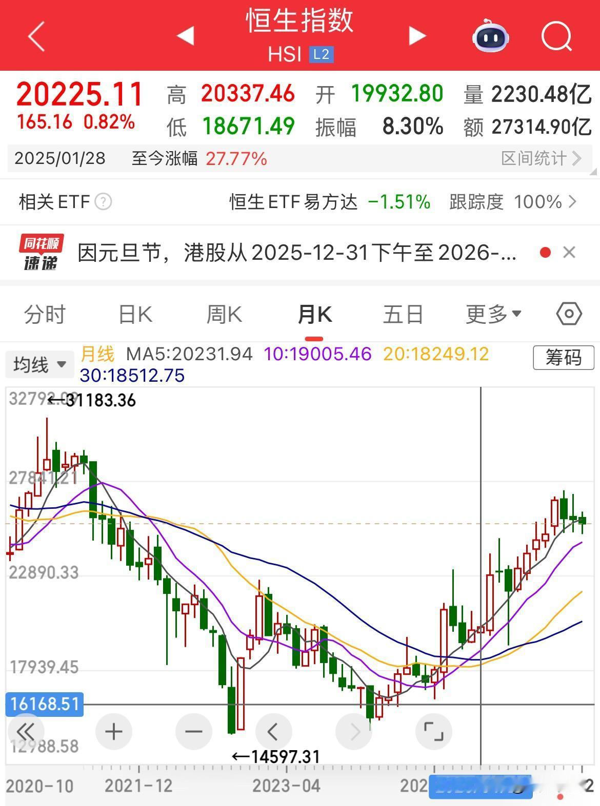 2025年总结,美股纳指涨幅20.36%,A股上证涨幅18%,港股恒生科技涨幅2