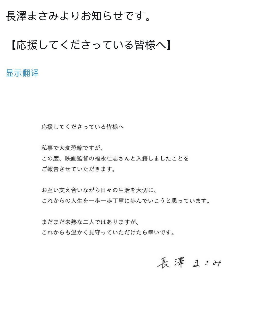 卧槽长泽雅美宣布结婚了!!长泽雅美与导演福永壮志结婚长泽雅美宣布结婚
