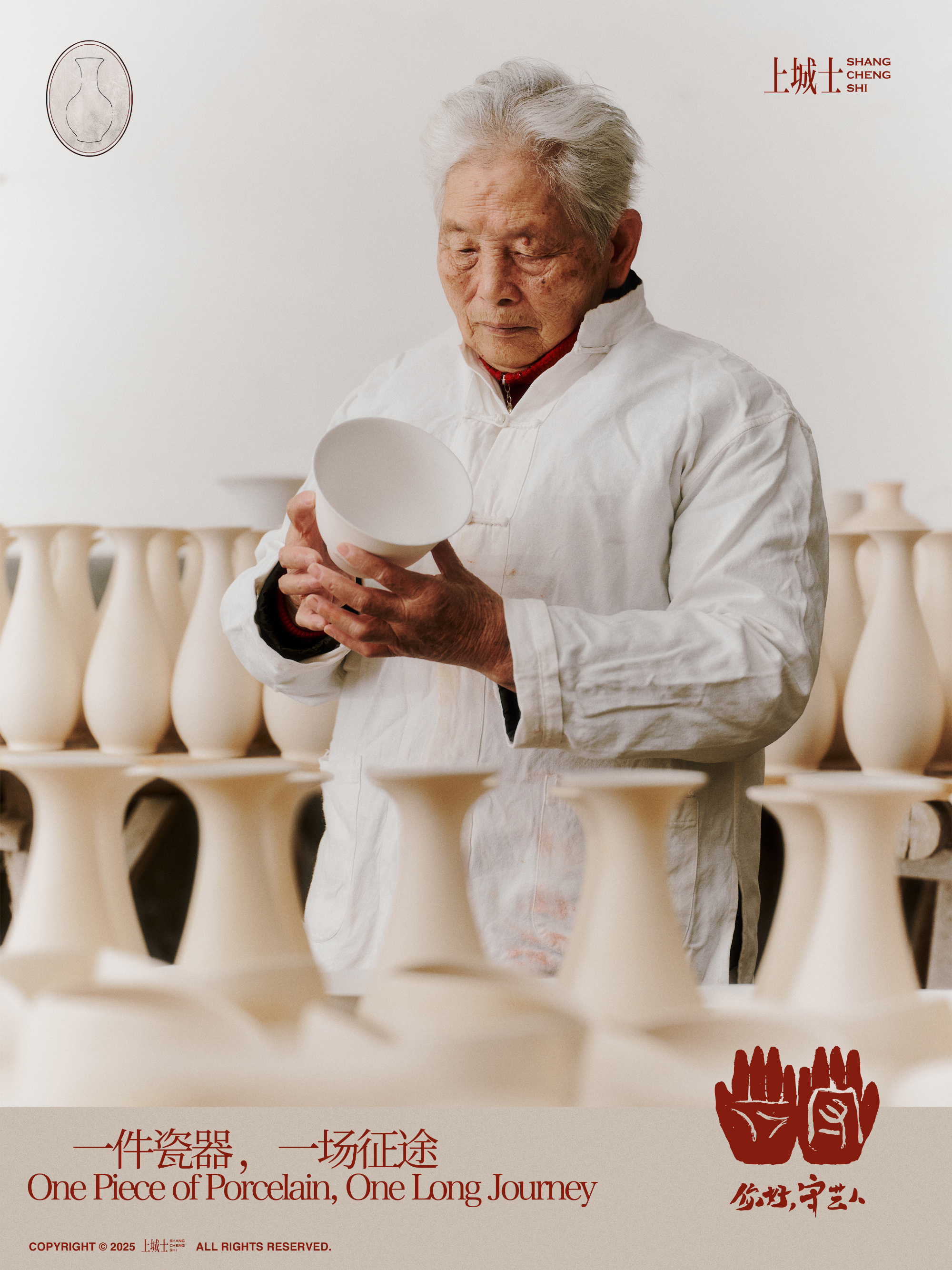 上城士「你好,守艺人」特辑——探访一百个守艺人陈碧舸 走进景德镇。大地有其原色,文明因此被记住。在景德镇,高岭土为骨,瓷石作肉,山川的沉积,经由火与时间,被塑成器物的形态。灰砾,是地貌的静默回声;赤陶,是窑给予泥土的生命瞬间。这一次,让器物、土地与行走并置——当RIMOWA ESSENTIAL 系列限定灰砾与赤陶色行李箱回望自然来处工业设计不再只是功能,而成为一种对文明源头的致意。上城士你好守艺人感念大地,见瓷思心摄影:莫默