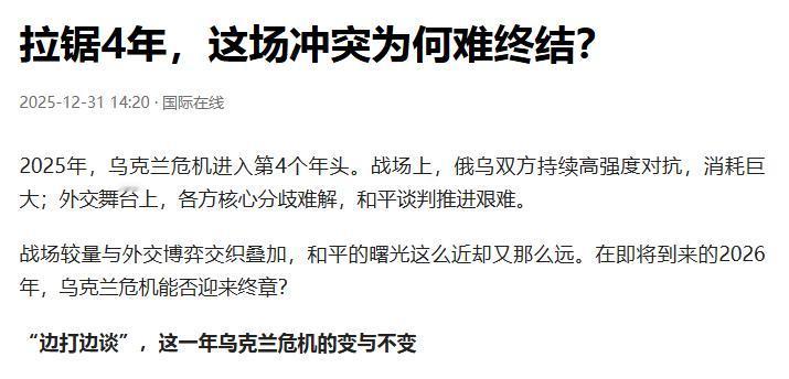 凌晨复仇轰炸!大规模轰炸拉开序幕,导弹、无人机铺天盖地,乌指挥官痛悔:不该让士兵大量送死 新华社最新消息,俄罗斯开始执行大规模报复性复仇行动,对乌克兰重要目标实施大规模轰炸。根据俄罗斯国防部12月31日的通报,当地时间28日晚,乌克兰动用91架无人机从苏梅州和切尔尼戈夫州起飞,直奔俄西北部诺夫哥罗德州的俄总统官邸,其中一架无人机还携带了6公斤的爆破炸药,万幸的是所有无人机均被俄军防空部队击落,总统官邸未受破坏,但这种针对性极强的袭击彻底激怒了俄方。 俄外长拉夫罗夫明确表示,鉴于此次袭击事件,俄方的谈判立场将作出调整,而这场凌晨的大规模轰炸,正是调整后的首个强力回应。 从战场反馈的信息来看,此次俄方的轰炸规模远超近期常规作战水平,导弹与无人机铺天盖地的攻势让乌军防空系统疲于应对。 有乌克兰当地居民在社交媒体上描述,凌晨的爆炸声此起彼伏,持续了近三个小时,城市中的发电站、交通枢纽和军事设施相继成为袭击目标,部分区域已出现大面积停电停暖的情况。 乌克兰空军后续发布消息称,俄军此次行动发射了大量导弹和无人机,尽管乌军全力拦截,但仍有不少目标被命中,造成了人员伤亡和设施损毁。 这种高强度的报复性打击,也让原本就陷入僵持的俄乌冲突烈度再度升级,双方的对抗从局部阵地争夺蔓延到了后方核心目标的攻防。 就在俄方报复性轰炸持续推进的同时,乌军前指挥官的一段忏悔言论在国际舆论场引发了广泛关注。 乌军第47机械化旅前指挥官奥列克桑德·帕夫利伊上校面对记者镜头坦言,自己不该驱使大量士兵进行无意义的牺牲。 这位曾执掌乌军精锐部队的指挥官,亲历了拉博蒂诺大反攻和阿瓦迪夫卡战役的惨烈,他所指挥的第47机械化旅堪称乌军王牌,组建之初就配备了美制M2“布雷德利”战车、豹-2A6主战坦克等北约先进装备,士兵还接受过北约专业培训,一度被寄予扭转战局的厚望。 但现实却是,这支部队在连续高强度作战中被反复消耗,仅在阿瓦迪夫卡战役期间,日均战损就达50人左右,7个月累计损失更是达到11000人,相当于完成了三次重建。 帕夫利伊的忏悔道出了俄乌冲突战场上的残酷真相:大量缺乏实战经验的新动员兵补充入队后,甚至没有熟悉装备的时间就被仓促派往前线,最终沦为无意义的炮灰。 他回忆称,在阿瓦迪夫卡战役中,乌军通信系统遭俄军电子战干扰,各作战单元失去联系,只能被动防御,而高层却依旧不断下达攻坚任务,这种不顾士兵生命的部署,让无数年轻生命永远留在了战场。 如今随着俄方大规模报复性轰炸的展开,乌克兰战场的形势更加严峻,帕夫利伊的忏悔也让更多人开始反思这场冲突的意义,原本被西方媒体渲染的“正义反攻”,在大量生命的逝去面前,逐渐显露出消耗战的本质。 值得注意的是,此次俄方报复行动发生在岁末年初的关键节点,各方围绕俄乌冲突的外交博弈也在同步激烈展开。 就在俄方轰炸的前一天,美国总统特使威特科夫还与英法德三国领导人的国安顾问以及乌克兰谈判代表举行电话会议,讨论推进俄乌和平进程的“后续步骤”,涉及强化对乌安全保障和乌克兰战后重建等议题。 乌克兰总统泽连斯基在30日的新年致辞中也亮明了和平底线,称不会为了和平而不惜代价,同时承认乌克兰人“非常疲惫”,但否认会放弃抵抗。 而俄罗斯总统普京则在新年贺词中向参加特别军事行动的俄军士兵表达支持,强调“相信我们终将胜利”,并呼吁全体俄罗斯人保持团结。 事实上,进入2025年以来,俄乌冲突就呈现出“边打边谈”的特点,战场上双方持续高强度对抗,消耗巨大,外交舞台上各方核心分歧却难以化解。 中国社会科学院俄罗斯东欧中亚研究所研究员李勇慧指出,当前俄罗斯在顿涅茨克到扎波罗热一线处于攻势,但任何单一战斗都无法决定战争整体态势,冲突整体呈现长期化和持久性。 而美国立场的转变则为局势增添了更多不确定性,特朗普政府上台后停止对乌无偿援助,还施压乌克兰推动和平进程,这与欧洲加快“挺乌抗俄”的步伐形成了鲜明对比。 如今俄方的大规模报复性轰炸,无疑让本就曲折的和平进程雪上加霜。帕夫利伊的忏悔或许只是乌克兰战场困境的一个缩影,随着冲突的持续,双方的消耗还将不断加剧。 国际社会普遍认为,俄乌双方在领土归属、安全保障等核心议题上的分歧短期内难以弥合,2026年乌克兰危机可能会在多轮谈判的督促下出现一些脆弱停火,但彻底达成和平协议的难度极大。 对于普通民众而言,无论冲突的最终结果如何,少一些无意义的牺牲,早日重启实质性和平谈判,才是最迫切的诉求。