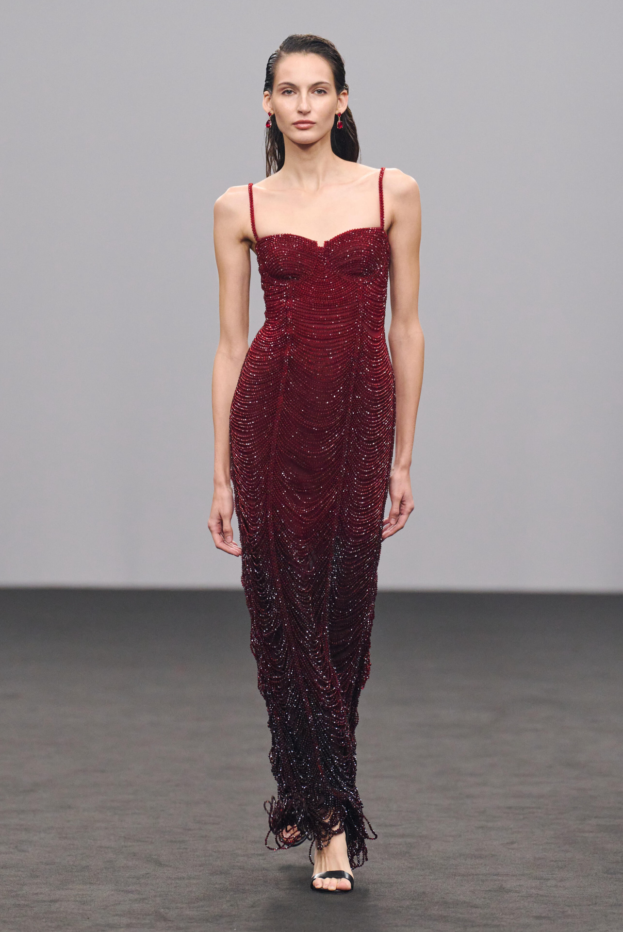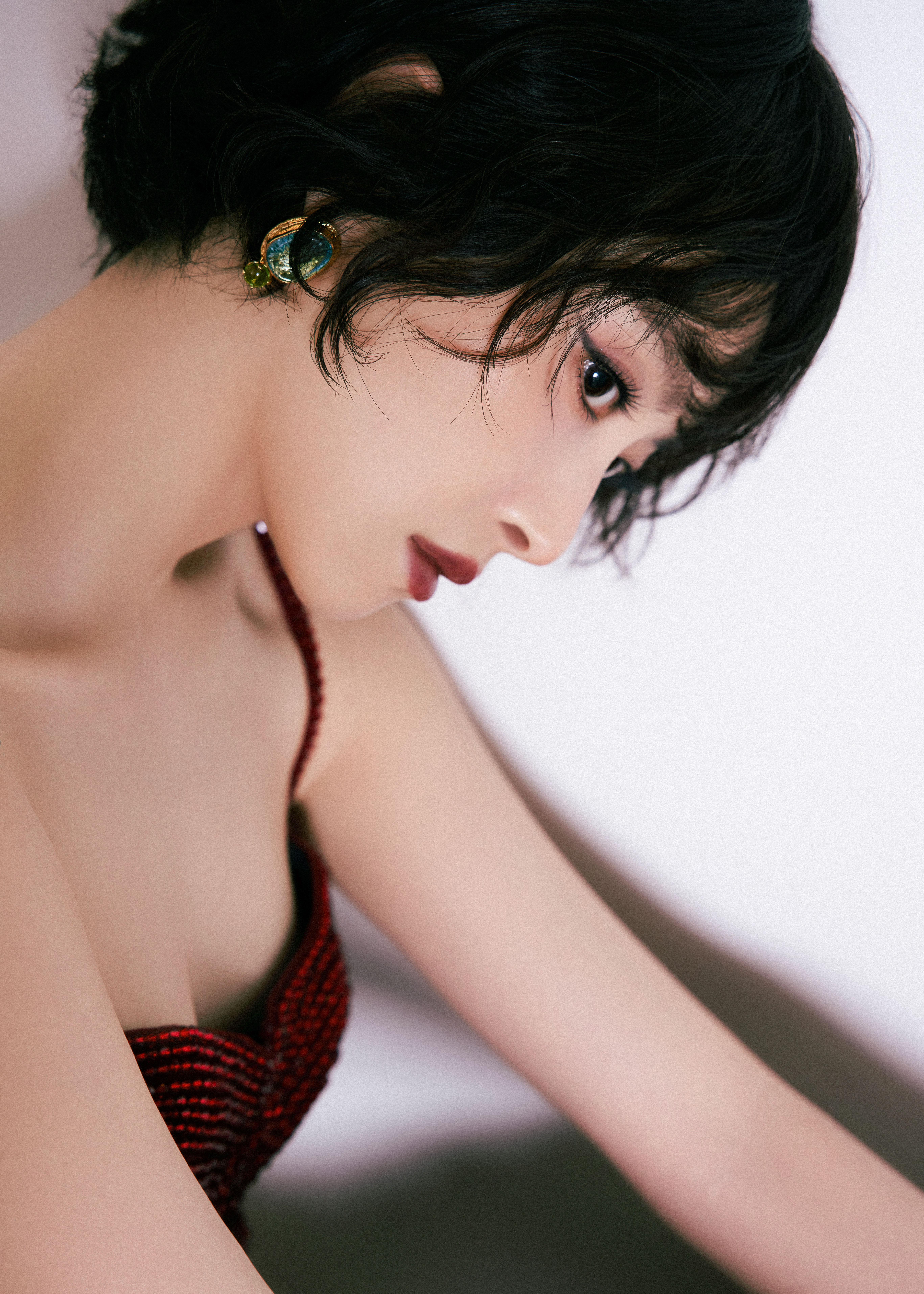 宋茜身着 Kresha Bajaj 2026春夏系列亮片红裙演绎2026新年大片
