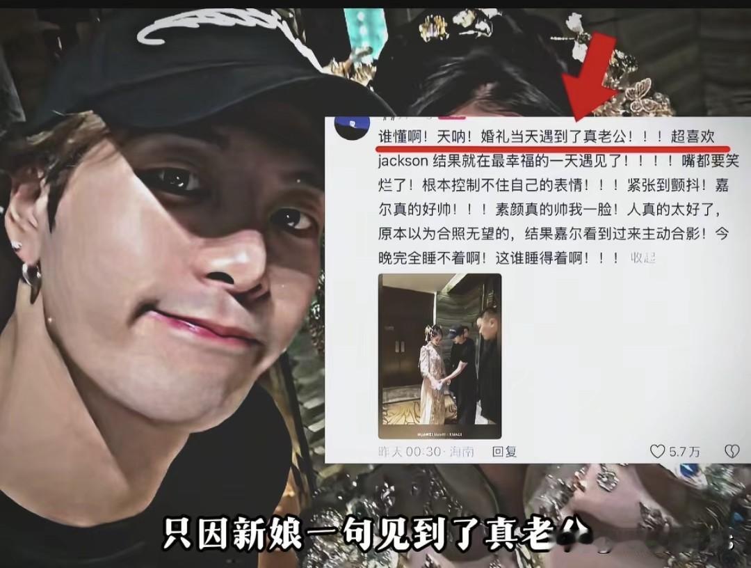 新娘婚礼偶遇王嘉尔,发朋友圈称见到“真老公”,新郎惨被全网心疼 起因一新娘结婚当天偶遇王嘉尔,和偶像合了影,转头就在社交平台发文:“今天终于见到真老公了”,配图九宫格全是王嘉尔,新郎直接隐身。 这操作把全网看傻了!有人说她勇敢追梦,更多人替新郎心寒:你穿婚纱奔向他,他穿西装守着你,结果你心心念念的是别人。 追星没错,但婚姻不是真人秀,新郎可能不会跳舞、不会rap,上不了热搜,但他会在你素颜熬夜时递杯温水,在柴米油盐里陪你过日子。 追星别追丢了眼前人,你偶像只是一分钟高光,身边的他才是一辈子的暖光。真老公不在热搜上,在给你做一日三餐的烟火气。