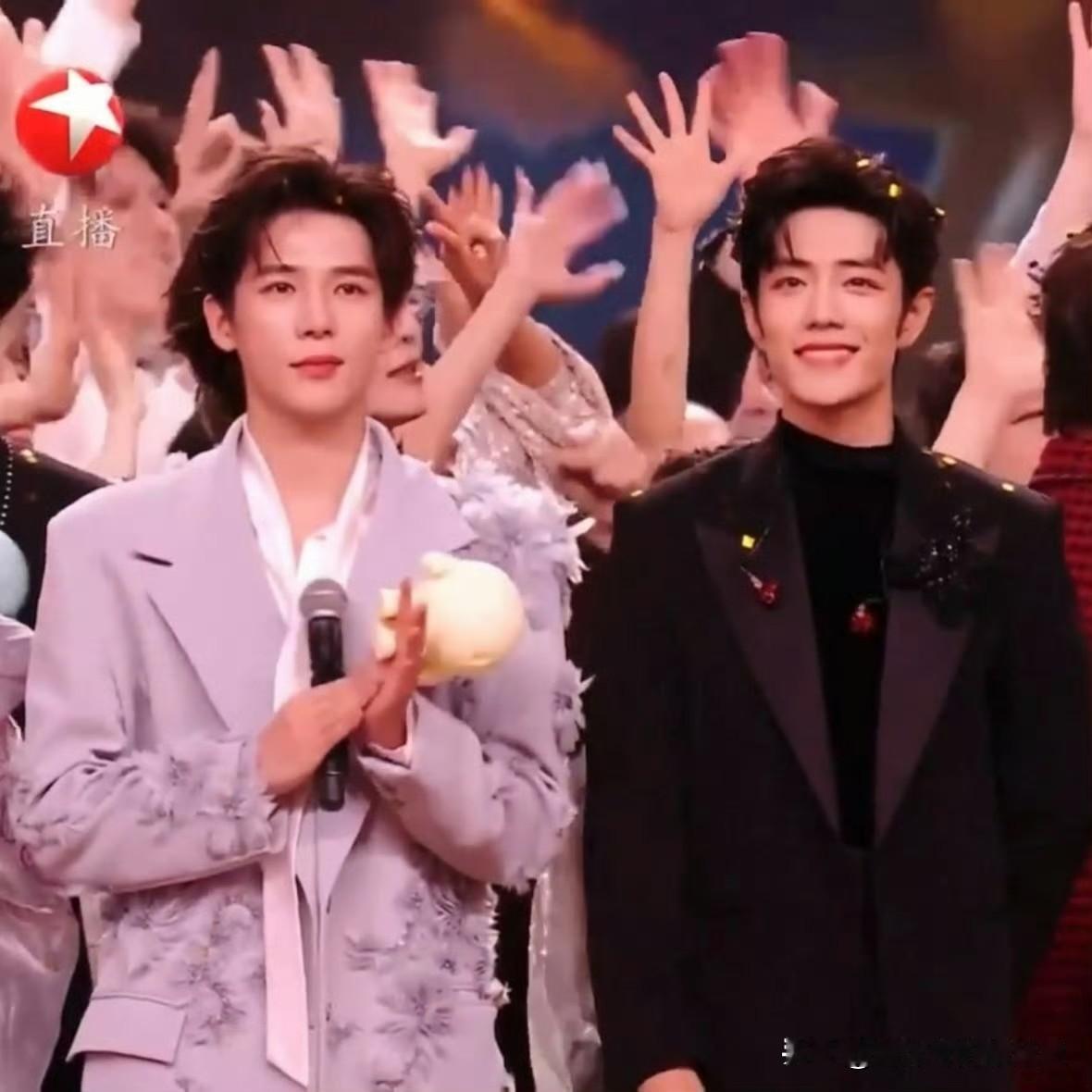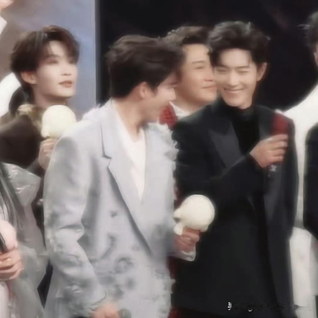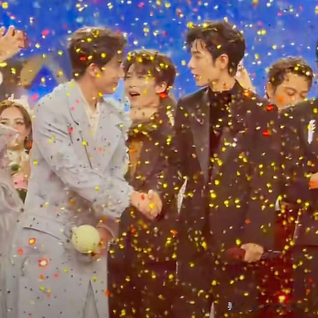 啊咧,是互相包过场的关系[马思纯的微笑] 两位大帅哥新年快乐~多多合作哦! 肖战王安宇握手
