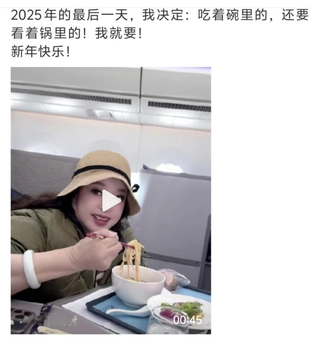 看咱庆奶跨年发文:2025年的最后一天,我决定,吃着碗里的,还要看着锅里的!我就要!新年快乐! 75岁啦,吃啥啥香,不仅吃得香,更想多吃。碗里的要吃,锅里的还要吃。多多益善!大口吃面条。吃得是津津有味。要不人家刘晓庆身体好呢,古稀之年的年纪却是中年人的体魄,甚至年轻人的体魄。 过了2025年,来到了2026年。庆奶在过去年代里,铸就了辉煌。75岁的年纪拍综艺,拍短剧。游泳,长跑。直播,写书法。忙的时候不亦乐乎!未来还会很忙,生命不息,战斗不止。祝她身体健康,事业更旺!