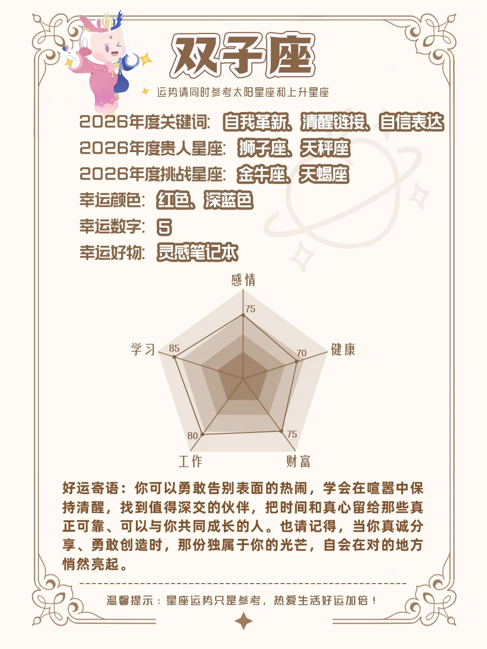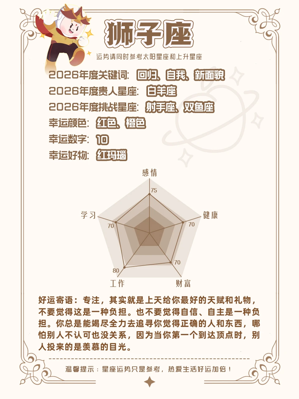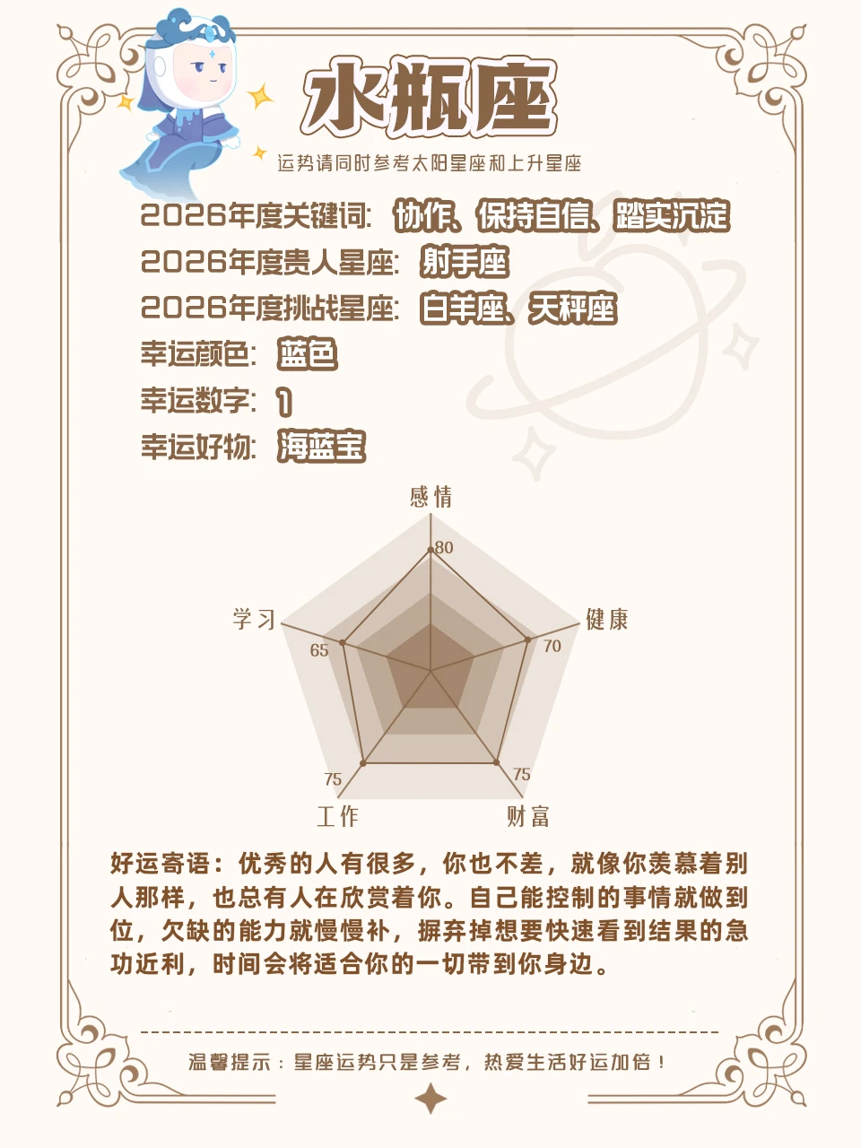 温馨提示:星座运势只是参考,热爱生活好运加倍!