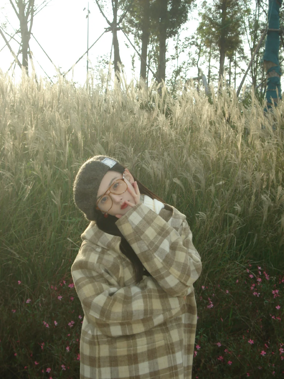 粉衫映夏草木香粉色T恤如撷取的夏花般明媚,白裤衬着茵茵草坪,静坐于绿意间的