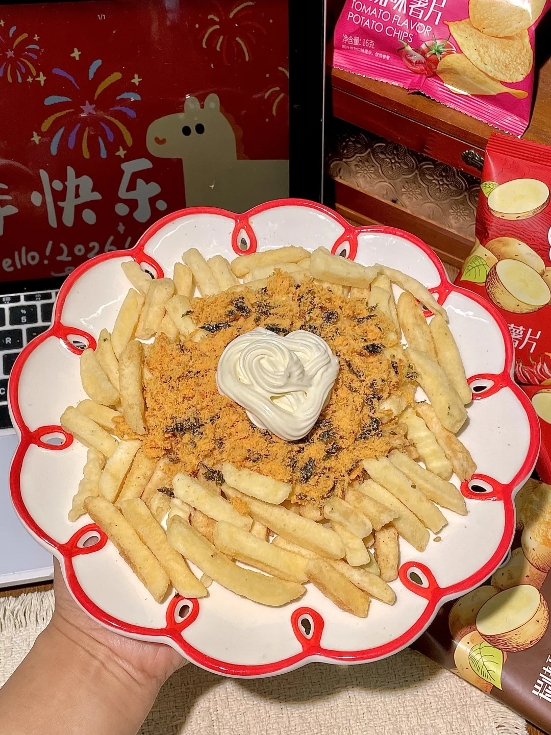 薯条🍟+奶酱+海苔肉松 这个组合光想想就很好吃了。。。