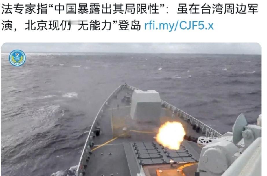 法媒声称,本次军演暴露出中国军力的“局限性”,北京现在仍“无能力”登岛!12月31日,法新社刊文表示,中国对台湾的包围圈正在进一步收紧。北京于12月29日和30日在台湾周边海空域举行了新一轮大规模军事演习。   这两天,法新社给台海局势下了个看似“高明”的结论,解放军围着台湾转来转去,却没真登岛,这恰恰说明“能力有限”,意思很直白,要是真有本事,早就打上去了。   这个说法,听着像分析,其实挺荒唐,只要把视角从西方编辑室,挪到那几天真实发生的演训现场,看一眼航迹、距离和部署,就会发现,这种逻辑根本站不住脚。   很多人盯着的,始终是“有没有抢滩”“有没有开火”,但真正懂点军事的人看的是控制力,这轮演训,根本不是简单转圈,海警船直接压到马祖3海里内,用闽南语现场喊话,在台军眼皮底下进出。   这已经不是展示火力,而是按行政执法的方式在走流程,意思很明确,这里怎么算、谁说了算,已经不需要再解释,到了这个距离,能不能登岛,从来不是技术难题,而是要不要现在做的问题。   再看空中和海上,舰载直升机可以直接俯视台东机场,歼-20编队贴着12海里线切入,那套被台当局反复挂在嘴边的“防空识别区”,在隐身战机面前几乎没有存在感。   真正让岛内焦虑的,其实不是登陆,而是封锁,台媒自己都在算账,一旦海上被卡死,能源、淡水、燃料,能撑多久,有人直说,可能连两周都不到。   这恰恰说明了这次演训的核心思路,不一定非要冒着枪林弹雨冲上海滩,先封住、再压制,水、电、油、外援一断,整座岛就会慢慢“喘不过气”。   更讽刺的是,说这话的还是法国媒体,北京现在的克制,逻辑也是一样,不是能力不够,而是要把代价降到最低。   毕竟,岛内的民众、城市、基础设施,本来就是中国的一部分,把地方打成废墟再“接手”,那是美式霸权的打法,不是统一的目标,解放军要的是可控、可接续的结果,而不是两败俱伤。   还有一点常被忽略,台岛以东的深海方向,航母编队和火箭军的动作,是在告诉外部势力,就算想从太平洋插手,这套立体部署也已经等着你了,这不是只准备一场登陆战,而是准备应对全向干预。   所以,对岛内的“台独”势力来说,真正难受的不是“这一秒没登岛”,而是那种全天候的压迫感,船不敢走,油轮绕道,雷达一开就被压制,绳子已经套上,只是在慢慢收紧。   别再用那种傲慢的眼光,去误读这种东方式的布局,什么时候迈出最后一步,从来不是看“行不行”,而是看时机、看火候、看哪里才是真正的七寸,等真到那一步,今天还在嘲讽的那些人,可能连反应的时间都没有。