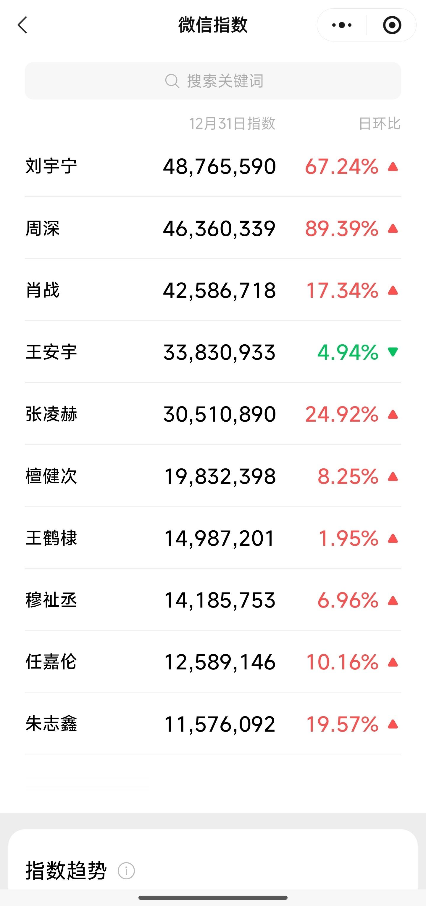 12月31日,跨年晚会,众明星微指一览——❶刘宇宁。❷周深。❸肖战。❹王安宇。❺张凌赫。❻檀健次。❼王鹤棣。❽任嘉伦。❾穆祉丞。❿任嘉伦。11,朱志鑫。PS:与我想的不太一样啊。
