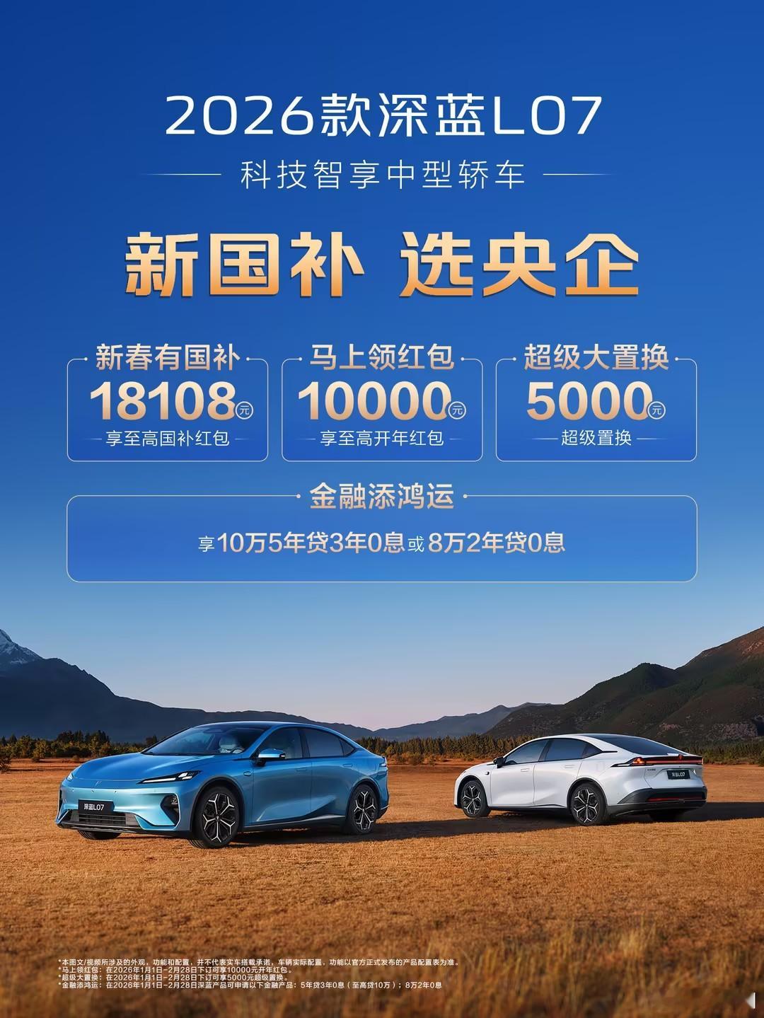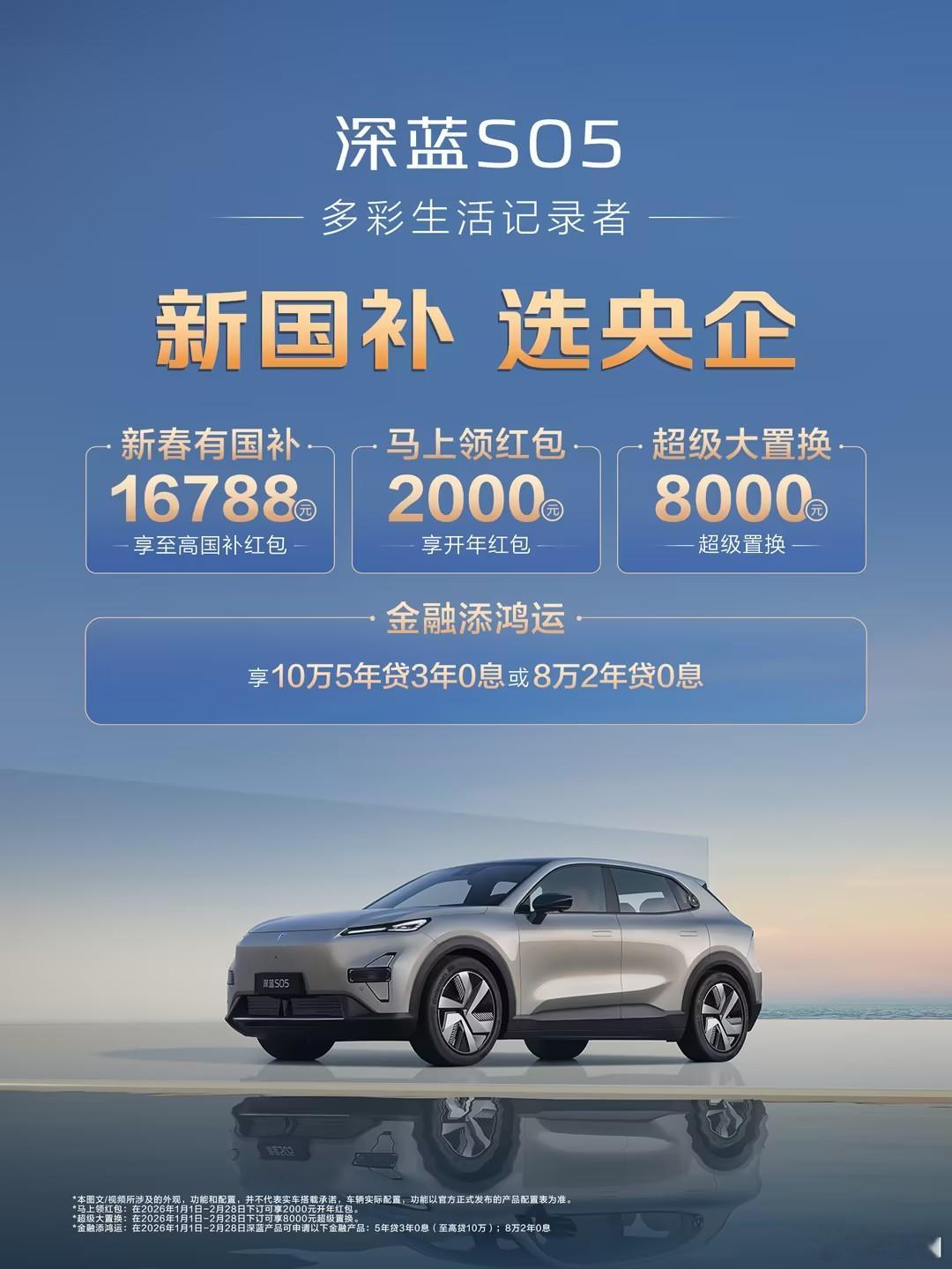 把握“新国补”机遇,信赖央企品质!深蓝全系放大招,国补、红包、置换、金融四重惊喜钜惠,看准时机先享新年惊喜。新年国补深蓝性价比拉满