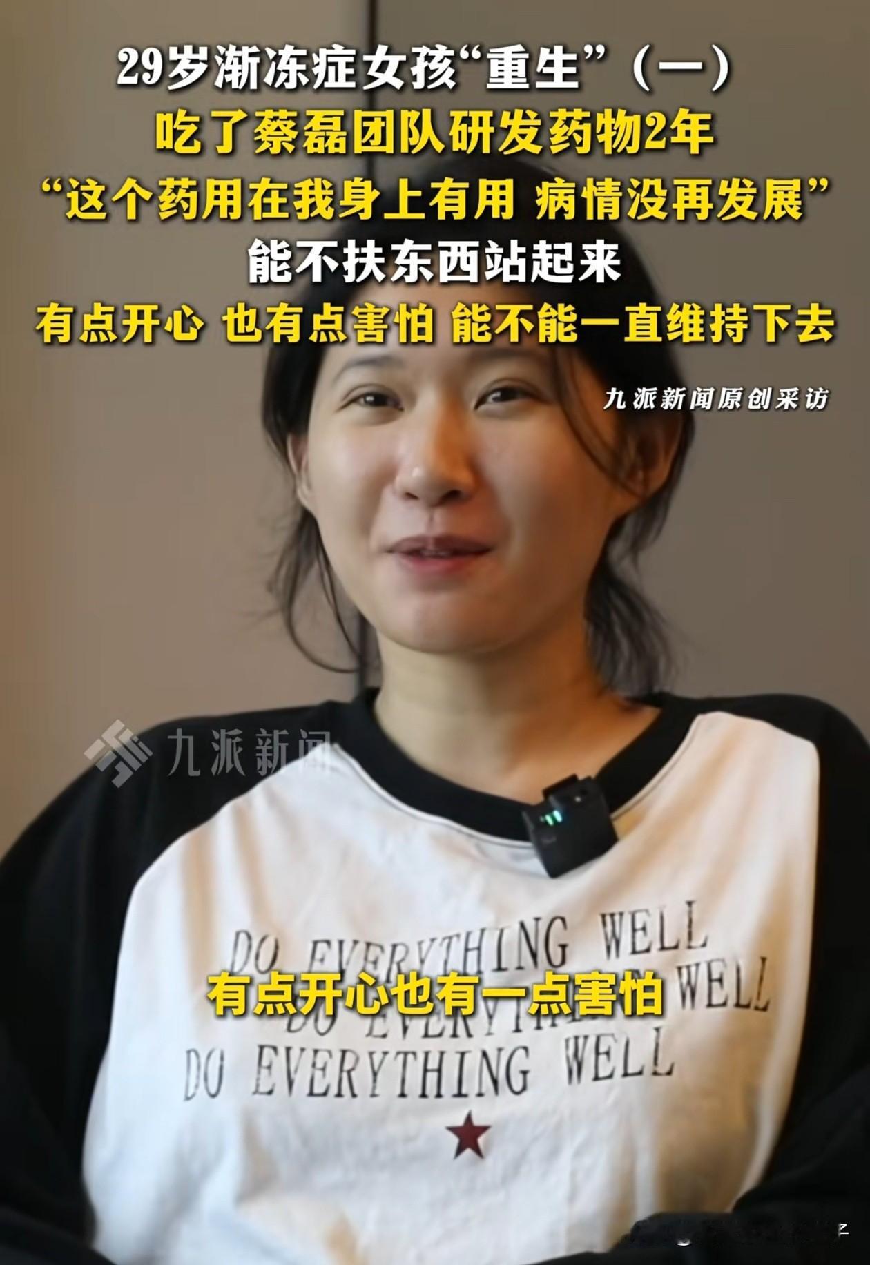 看到这一幕,终于明白了蔡磊先生的伟大!29岁渐冻症女孩小刘是幸运的,她是第一批蔡磊团队自研药的试用者,如今2年过去,女孩病情已经彻底得到控制,没有再继续恶化。 女孩从最初生活不能自理,到现在已经可以不需要他人搀扶,就可以自己站起来了,还能扶着墙慢慢走路,不再需要家人特别的照顾,女孩说这一切都要感谢蔡总,是蔡总给了她第二次生命。 女孩脸上激动开心的表情溢于言表,逐渐开始对生活充满期待,才明白蔡磊先生和他团队做的事有多么伟大。 因为蔡磊让很多原本已经陷入绝望的人重拾了希望,也让更多的人关注到了渐冻症患者这个群体,哪怕就算最后只救了一个,也是天大的功德。