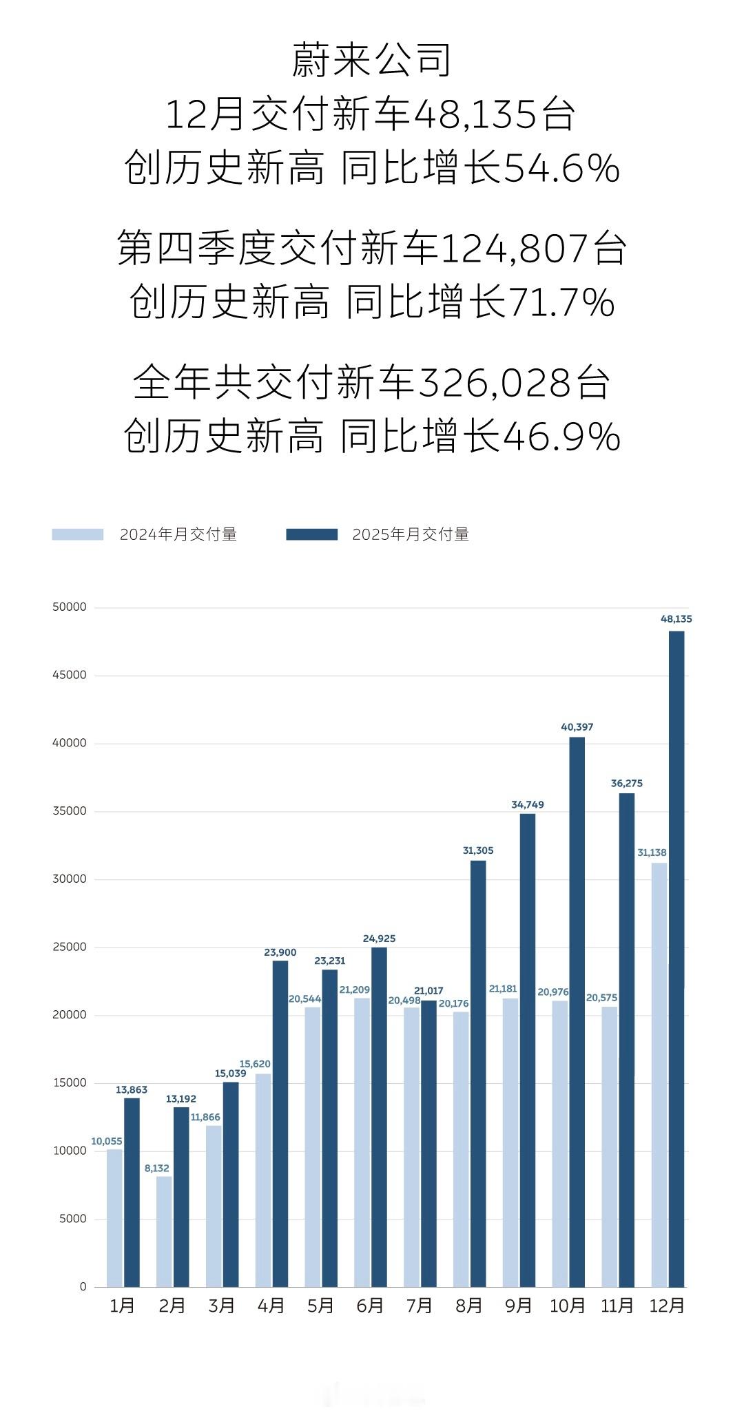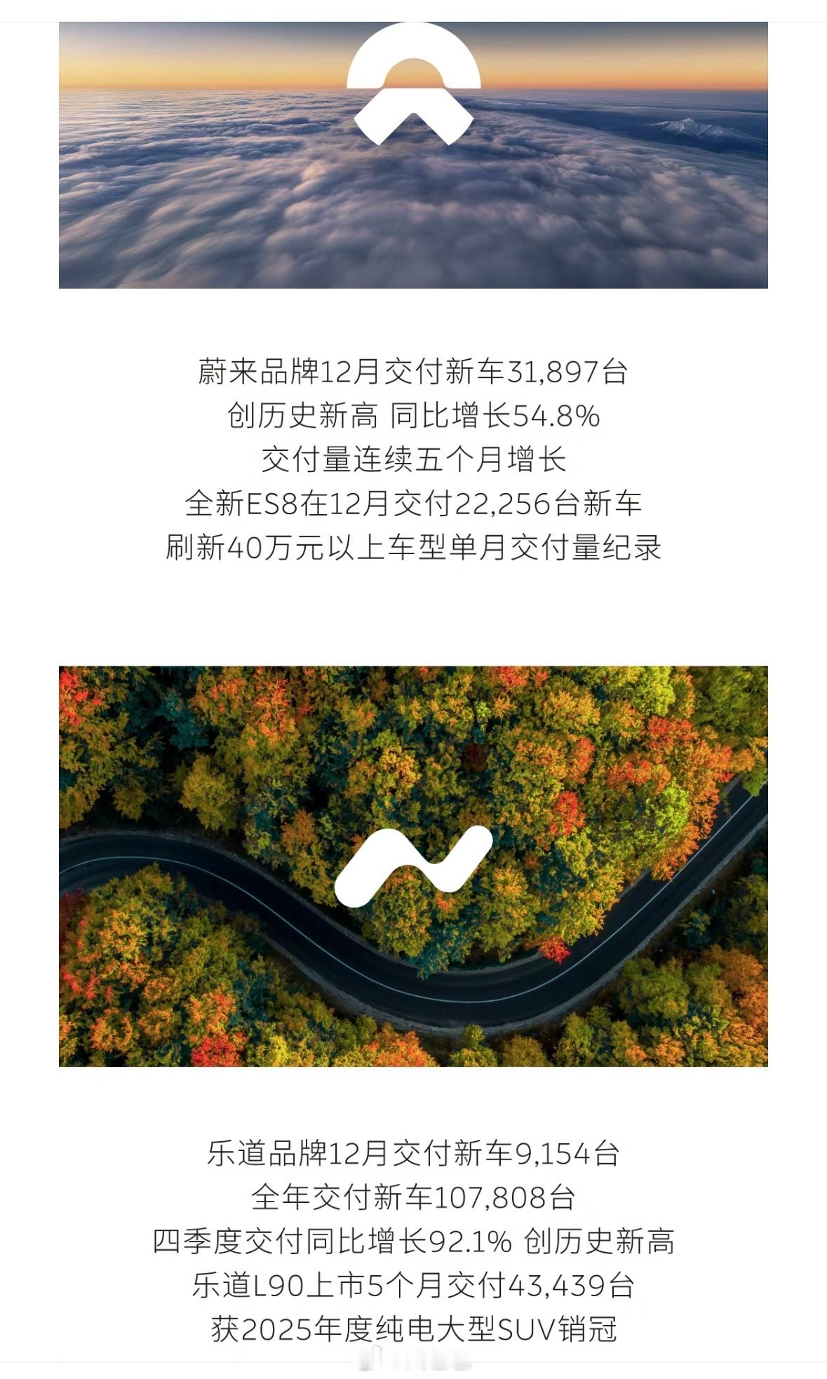 蔚来集团全年交付124,807台基本符合Q3财报中提及的Q4交付指引(12万-12.5万台)。比较可喜的是是蔚来品牌同样创下历史新高,归功于ES8 12月单月达到22,256台,这也是创下神迹了,这意味这蔚来集团Q4 毛利率将大幅改善。比较忧的是,乐道持续低迷,12月依然不过万,L90的新车效应持续在衰退,蔚来要实现2026年全年盈利,乐道必须有亮眼的表现。蔚来es8蔚来12月交付量新能源汽车