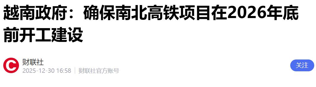 越南铁路最新消息! 2025年12月30日,越南建设部部长陈宏明重磅官宣:南北高铁必须在2026年底前开工,同时老街-河内-海防铁路要跟中方技术同步推进,这条390多公里的铁路将直接连通越南北部与中国西南地区! 从2000年首次提出构想,到2010年因预算过高被国会否决,再到2024年国会重新批准,这条全长1541公里、设计时速350公里的铁路,承载着越南贯通南北经济命脉的梦想——毕竟现在从河内坐火车到胡志明市要30多个小时,要是真能5小时直达,对沿线20个省市的经济带动可想而知。 但陈宏明部长的官宣虽然掷地有声,却没能解答困扰这个项目二十年的核心难题,反而让这两个问题变得更加迫切。 钱的事儿,这也是南北高铁最绕不开的坎。根据越南国会2024年批准的方案,这个项目总投资高达670亿美元,相当于越南2024年全年财政收入的九成,把全国一年的税钱都投进去都不够。 越南政府不想自己承担太多风险,想让企业来挑大梁,结果却闹了笑话。 2025年5月,越南首富范日旺旗下的Vingroup高调宣布参与,还跟德国西门子签了技术合作协议,看似曙光初现,可仅仅过了7个月,这家企业就突然撤回了投资申请,理由是要集中资源搞其他项目,背后其实是因为他们提出的“20%自有资金+80%政府零息贷款”方案被否决了——说白了就是想空手套白狼,赚了归自己,亏了让国家兜底,这种好事谁会答应? 之前宣称要注资千亿美元的美国M&G投资联盟,后来居然查无此人,注册地址都注销了,彻底成了一场闹剧。 钱的难题还没解决,技术选择上的纠结更让这个项目雪上加霜。越南一开始想跟日本合作,用新干线技术,结果2010年因为587亿美元的预算太高被国会否决。 后来又找过中国,中方给出的方案性价比很高,每公里成本只要1亿美元,还有在东南亚热带雨林地区建高铁的成熟经验,可越南因为担心技术依赖,硬是拒绝了。 转头跟德国西门子合作,虽然技术先进,但成本直接翻了两倍,而且德国的高铁技术跟越南现有以米轨为主的铁路系统完全不兼容,后续维护又是一笔天文数字。 越南自己的铁路技术几乎是空白,别说造高铁机车了,连一颗特种螺丝钉都得进口,这种情况下还要追求“技术自主”,无异于纸上谈兵。 跟南北高铁的“眼高手低”形成鲜明对比的,是老街-河内-海防铁路的务实推进。这条390多公里的铁路之所以要跟中方技术同步,核心原因就是“好用、实用”。 首先是轨距对接,这条铁路采用的是1435毫米标准轨,跟中国的铁路网能无缝衔接,未来从河内出发的货物列车,不用换轨就能直接开到中国西南的西安、乌鲁木齐,甚至远达欧洲,这对越南的跨境物流来说是天大的好事。 其次是中方技术的可靠性,中老铁路、雅万高铁这些已经通车的项目都是成功案例,不仅建设周期可控,而且能适应东南亚的地质和气候条件。 越南已经主动向中方提出,希望推动中国政府贷款框架协议的谈判,还建议中方指定专门机构对接,这跟南北高铁那种“想占便宜又不想付出”的心态完全不同。 其实这两条铁路的不同境遇,折射出的是越南基建的真实困境:既想靠大型工程实现跨越式发展,又不愿承担相应的成本和风险;既想利用中国的技术和市场,又怕陷入所谓的“依赖”,总想在大国之间玩平衡术。 就像2025年底南凭高铁全线贯通后,中国西南到越南的客运时间大幅缩短,凭祥口岸的通关效率也提升了30%,这些实实在在的利益让越南不得不认清现实——跟中方合作搞铁路,不是什么“风险”,而是能拿到真金白银的发展机遇。 现在距离陈宏明部长宣称的南北高铁2026年底开工 deadline 只剩一年时间,可目前连靠谱的投资方都还没找到,征地工作也因为资金不到位进展缓慢,已经造成了不少耕地闲置和农业损失。 反观老街-河内-海防铁路,已经在2025年12月启动了车站建设,进展顺利。或许越南真该好好想想,基建项目不是用来“撑门面”的,而是要服务于实际需求。 南北高铁要是继续抱着“空手套白狼”的想法,恐怕再过二十年也还是个“梦想”;而脚踏实地推进跟中方的铁路合作,把老街-河内-海防铁路建成通车,先打通北部的跨境物流通道,才是更务实的选择。毕竟对于发展中国家来说,先把“路”走稳了,才能谈得上快速发展。
