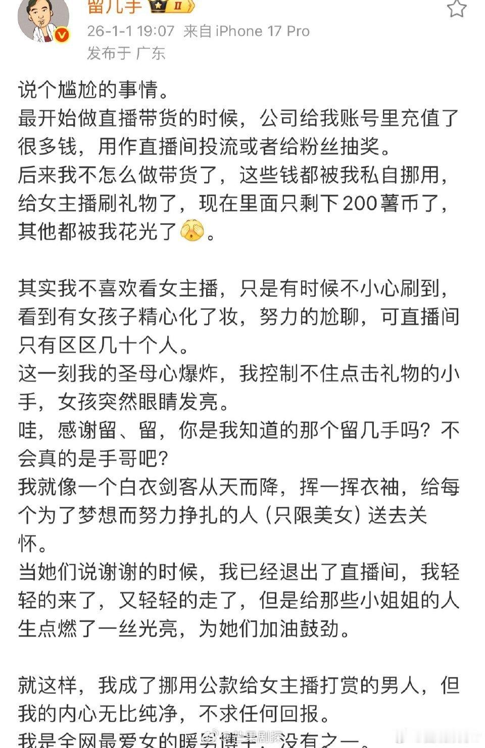 留几手用公司的钱给女主播刷礼物留几手私自挪用公款给女主播打赏 这一手操作…
