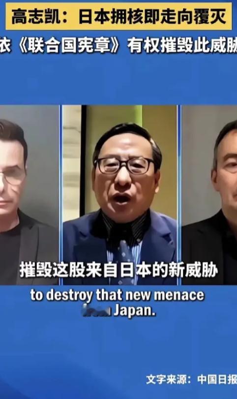日本若是真的拥核,我们该怎么办?高志凯给出了一个答案!他是这么说的:日本若是拥核,就是走向覆灭。按照《联合国宪章》,中方有权摧毁此威胁。 作为《不扩散核武器条约》无核缔约国,日本拥有完整核燃料循环能力和大量钚材料,理论上具备短时间造核能力,这一点早有国际共识。 近期拥核言论背后有明确政治推动——高市早苗政权上台后,日本防卫政策持续激进,军费连续14年增长,2026财年初始防卫预算将破9万亿日元,同时推动修改“安保三文件”,将“无核三原则”纳入讨论焦点。这种拿和平底线当政治筹码的操作,本质是在为突破核禁忌铺路。 有人认为日本国内反拥核声音强烈,比如原爆受害者团体痛斥相关言论纵容核战争,前首相石破茂等政界人士也明确反对,民间亦有“拥核即灭国”的呼声。 但必须看到,右翼势力正通过“试探言论-舆论预热-政策讨论”的步骤温水煮青蛙,今日的“个人观点”可能成为明日的“政策议题”,其隐蔽性与危险性更甚。 关键是日本一旦拥核,将引发连锁反应:韩国拥核声音会急剧放大,东北亚核多米诺骨牌可能倒下,全球核不扩散体系根基将被动摇,最终损害全人类安全利益。 这就回到高志凯观点的核心:为何日本拥核即走向覆灭?从国际规则看,《联合国宪章》明确禁止以武力威胁破坏国际和平,核武器的毁灭性使其存在本身就是严重威胁。 国际法院咨询意见也明确,当一国面临生存威胁时,可依据《联合国宪章》第51条合法行使自卫权,且相称性原则不排除必要反制手段。 这意味着,若日本拥核并对周边构成明确威胁,中方依据宪章采取包括摧毁威胁在内的反制措施,完全符合国际法准则。 从现实利益看,日本拥核必然自食恶果。一是外交孤立,中俄朝已明确严正警告,美国虽表面暧昧,但为维护“核伞”权威和全球霸权,绝不可能允许日本独立拥核,否则将引发盟友效仿连锁反应。 二是经济崩溃,日本拥核必退出《不扩散核武器条约》,面临国际严厉制裁,而其作为资源匮乏、高度依赖国际贸易的国家,根本无法承受这种打击。 三是国内动荡,日本核设施老化、管理混乱早已是公开问题,从福岛核事故到近期“普贤”反应堆放射性水泄漏,再到核设施质检造假,连和平用核都漏洞百出,更遑论保障核武器安全,这必然引发民众强烈反对与社会动荡。 高志凯的表态并非煽动对立,而是划出清晰红线,避免日本右翼误判。对我们而言,面对日本核试探,既不必恐慌也不能松懈:一方面要坚定维护国际核不扩散体系,通过多边机制施压,让其认清突破核禁忌的后果。 另一方面要提升国防实力与国际话语权,筑牢地区和平屏障。对日本而言,放弃军事野心、坚守“无核三原则”、履行核安全责任,才是符合自身利益与地区稳定的正确选择。 历史早已证明,靠武力扩张和核威慑求安全的国家,终将被自己点燃的战火吞噬,日本若敢踏过核红线,覆灭便是必然结局。