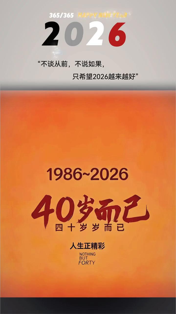 不谈从前,不说如果,只希望2026越来越好。 1986~2026,40岁而已,40岁岁而已,人生正精彩。365/365 GOOD BYE,2026。