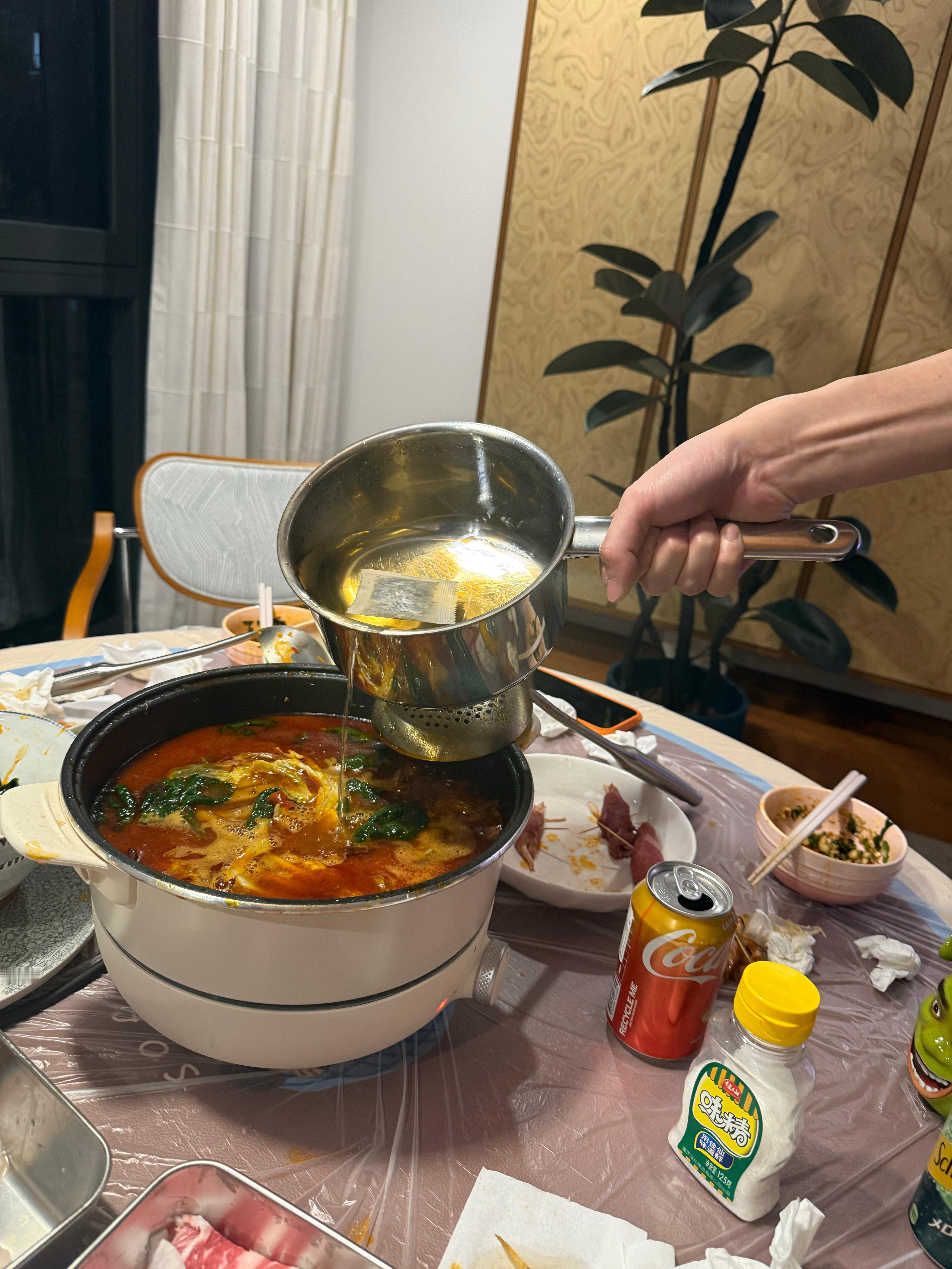 朋友们,我给你们说,我们家吃火锅有好专业,我妹专门去火锅店打了一碗地沟油回来放在火锅底料里面,然后加的老鹰茶,真的跟火锅店的味道一模一样