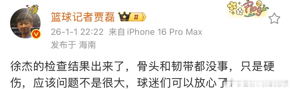 据贾磊记者透露下,不幸中的万幸!徐杰只是硬伤!骨头和韧带都没有问题!太好了,大家