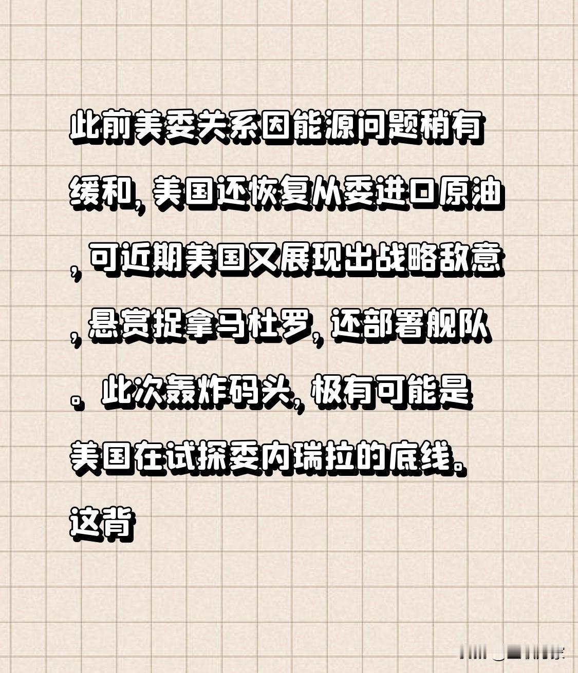 美军首次轰炸委内瑞拉码头,这事儿可太有看头了!此前特朗普就下令美军对加勒比地区公海上所谓“贩毒船只”开火,导致11名被美方称为“委内瑞拉毒贩”的人死亡。现在又轰炸码头,这到底是单纯的“禁毒行动”,还是军事干预的前奏? 要知道,此前美委关系因能源问题稍有缓和,美国还恢复从委进口原油,可近期美国又展现出战略敌意,悬赏捉拿马杜罗,还部署舰队。此次轰炸码头,极有可能是美国在试探委内瑞拉的底线。 这背后到底隐藏着怎样的战略意图?是为了控制委内瑞拉的石油资源,还是有其他不可告人的目的?美国后续还会有什么动作?委内瑞拉又会如何反击? 委内瑞拉战局 委内瑞拉的困境 委瑞瑞拉局势 南美委内瑞拉 委内瑞拉石油战 守护委内瑞拉 美陈兵委内瑞拉