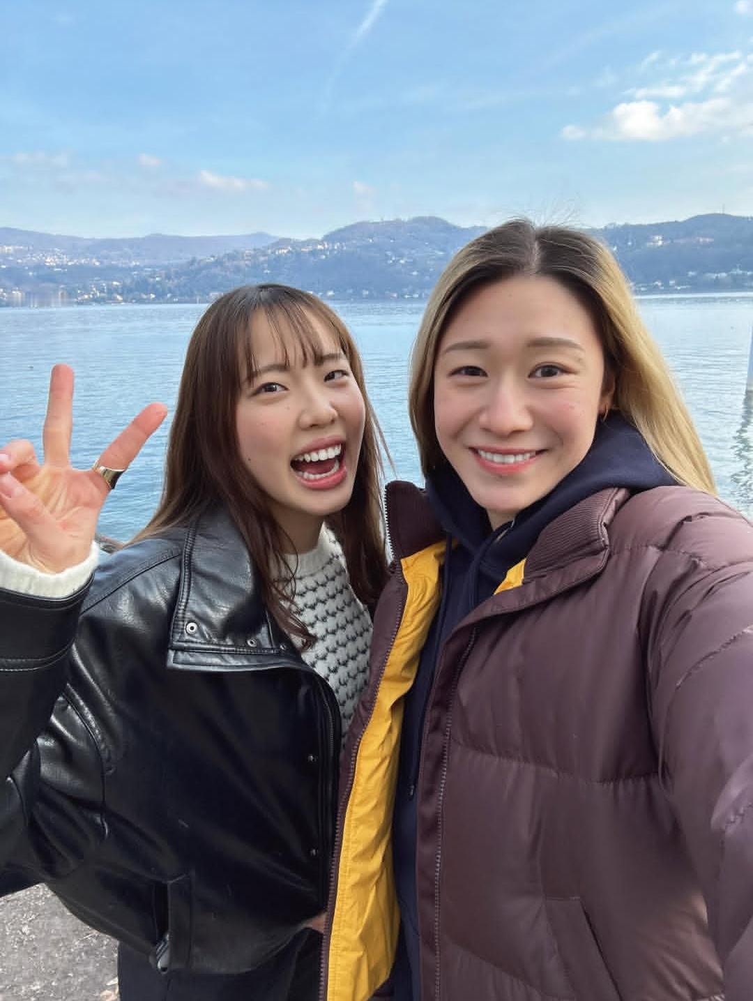 关菜菜巳与石川真佑在新年第一天,到马焦雷湖游玩。
