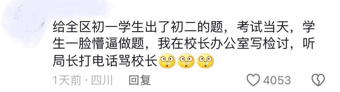 给全区初一学生出了初二的题,考试当天,学生一脸懵逼做题,我在校长办公室写检讨,听局长打电话骂校长