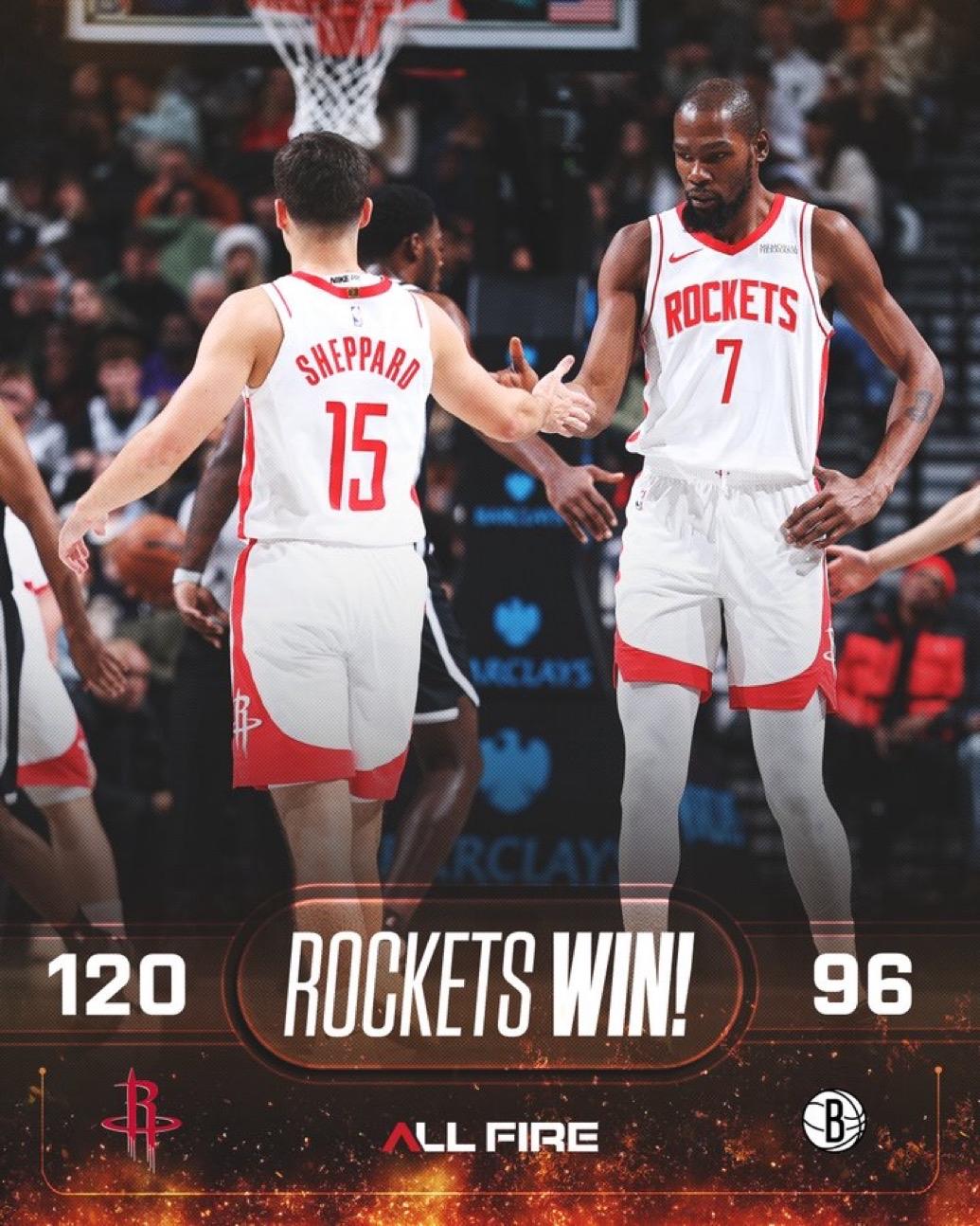 1月2日NBA常规赛战报(5场): 火箭120-96篮网 热火-活塞 76人
