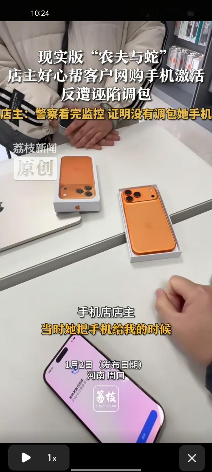 12月31日,周口市西华县。手机店店主称,女顾客在网上购买一部手机,来到手机店请他激活一下,没想到手机是假的。随后,他和手机卖家联系。 第二天早上,女顾客在手机店门口等着,说手机不是昨天去快递站签收的那个手机,店主才察觉手机被掉包了。警察看完所有监控,证明没有掉包她的手机。