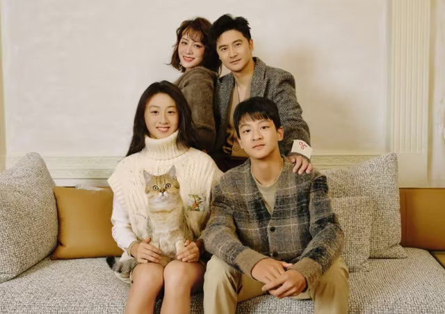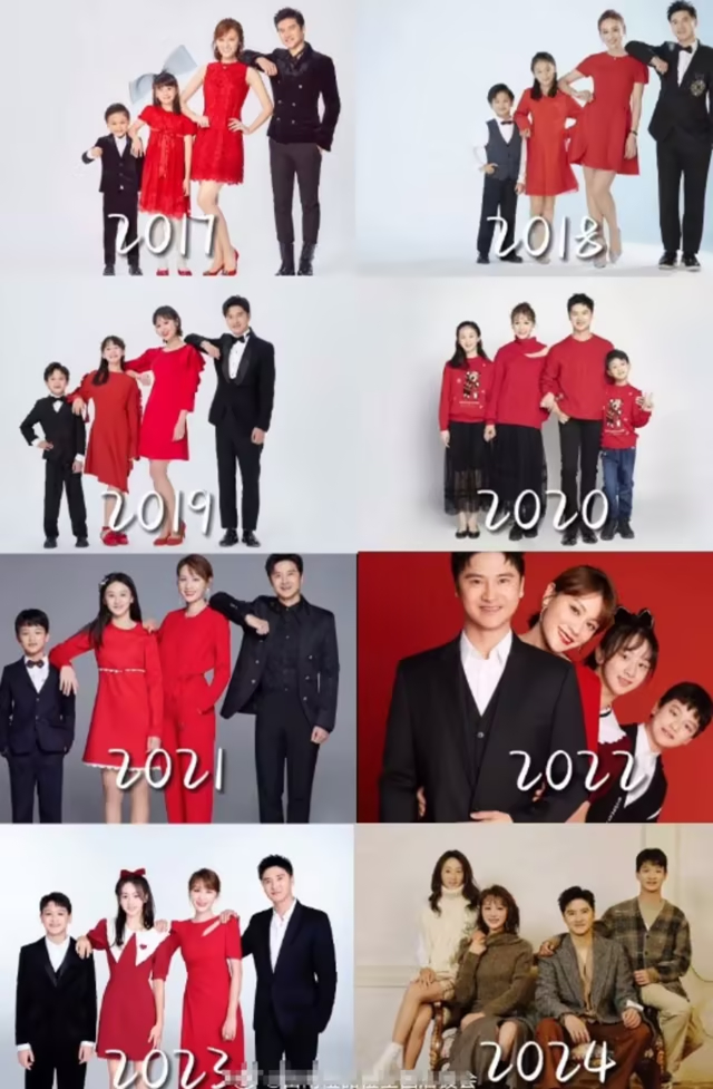 田亮一家新年拍照,森碟一张初恋脸真漂亮,和亮仔颜值都超越父母