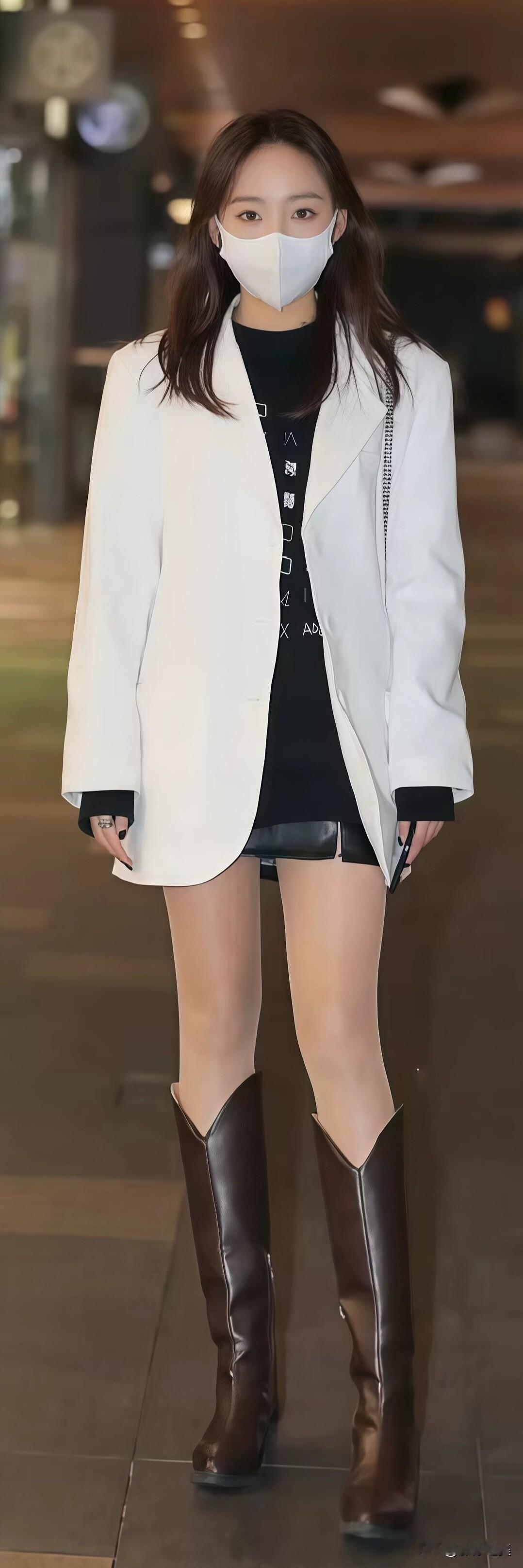 简约白西装搭配黑色内搭,再踩一双棕色长靴,气场拉满!简约配色穿出利落时尚感,这穿搭品味绝了
